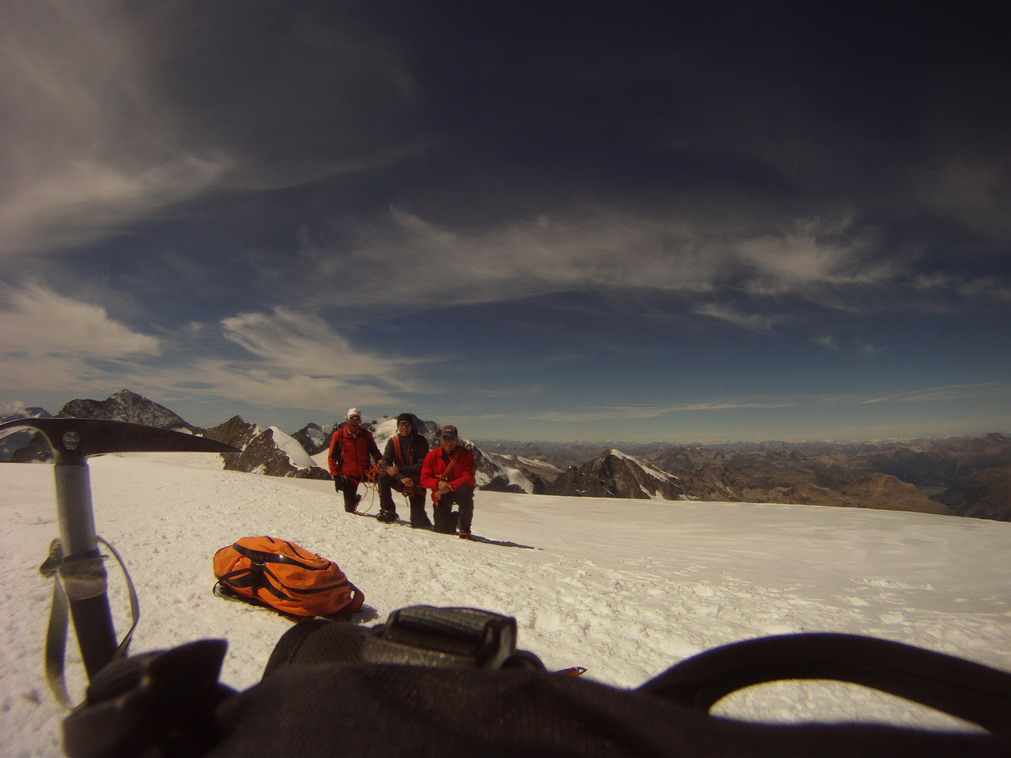 Na východnom vrchole dávame čaj, obliekame bundy a pokračujeme po hrebeni na hlavný vrchol Piz Palu 3905mnm. Na vrchole si podávame ruky, dáme energetickú tyčinku, spravíme rýchlu vrcholovú fotku a ponáhľame sa dole. Predposlednú lanovku nestíhame, tak nastupujeme do poslednej s personálom, rozčuľujeme sa (na oko), prečo môže personál ísť s nami, keď my sme ráno nemohli s personálom, aj keď bez odozvy. Nevadí... vo Švajčiarsku treba veľa veci prekúsnuť. Veď má najvyššie a najkrajšie vrcholy v Európe....