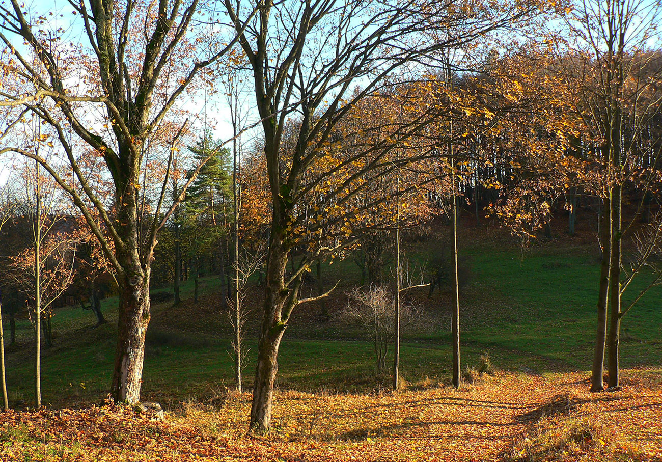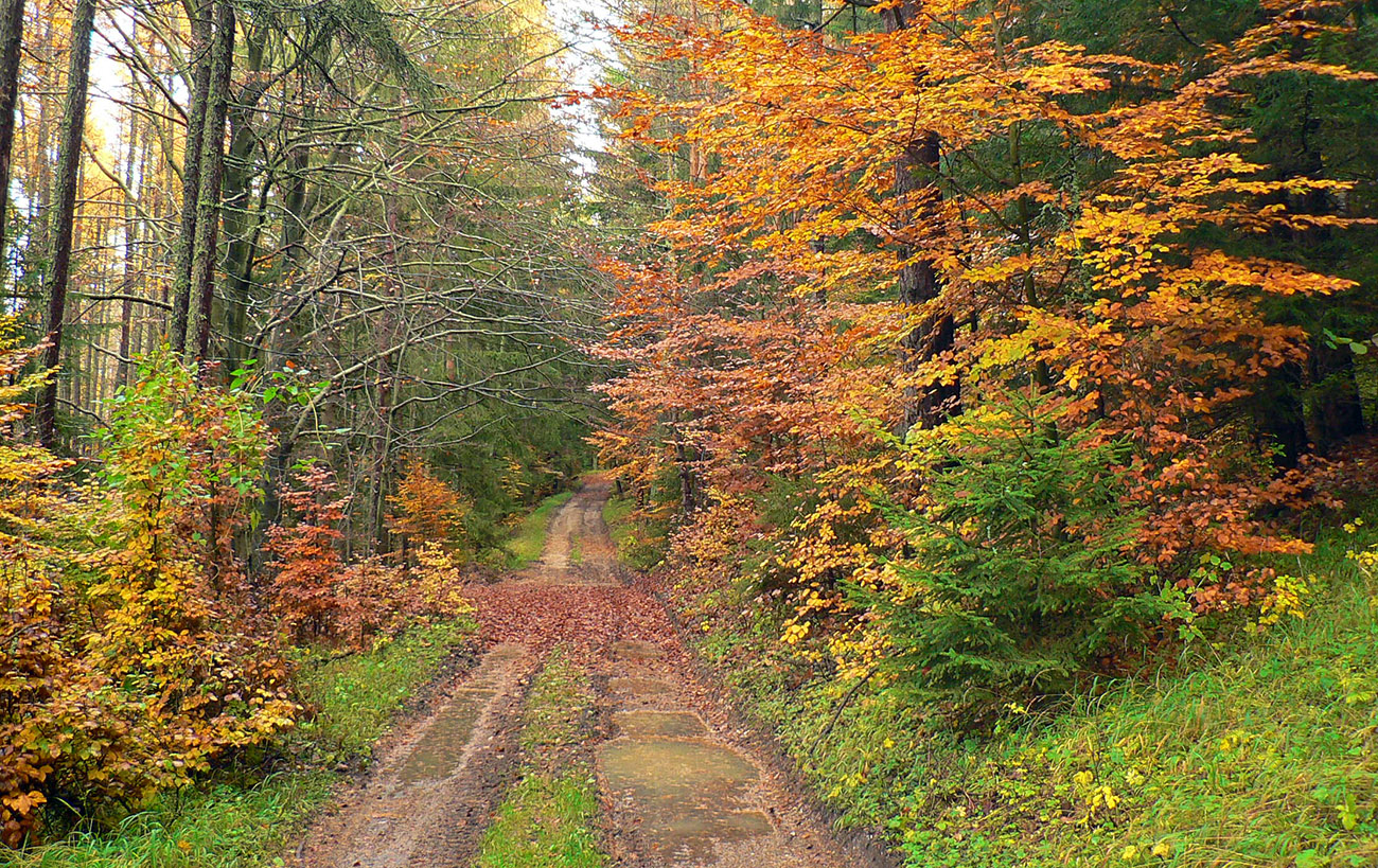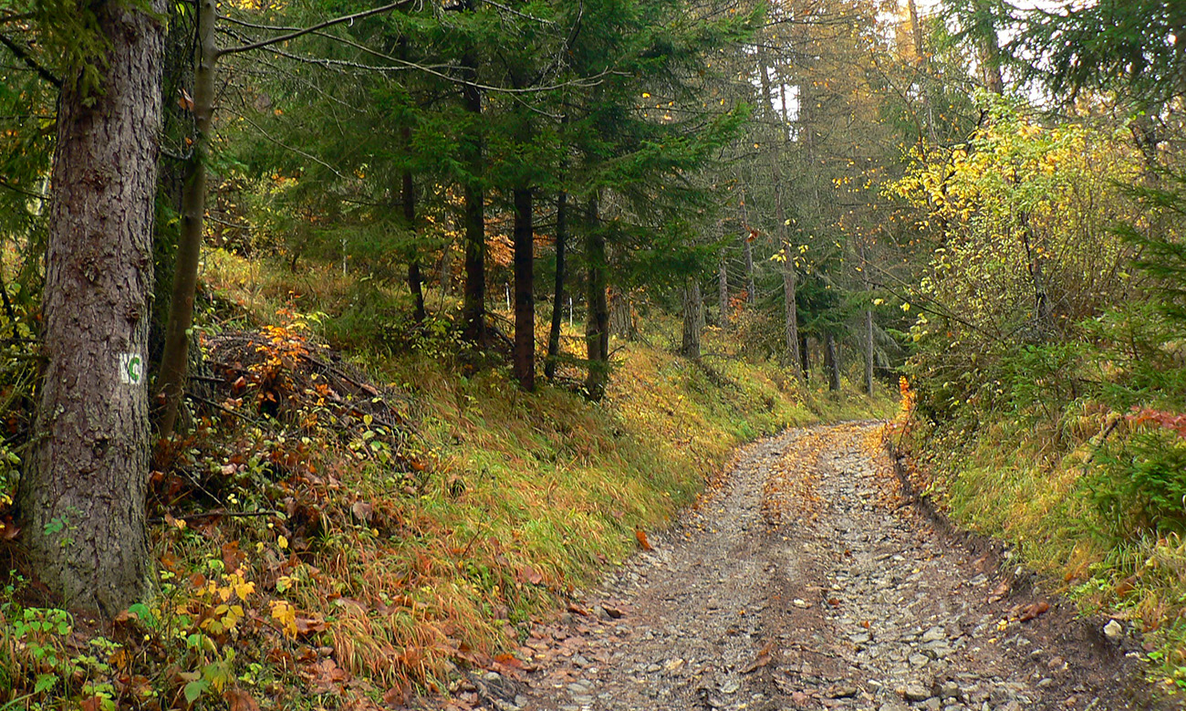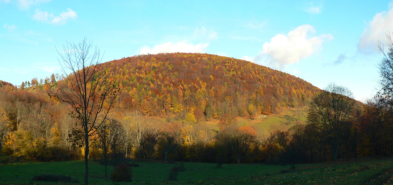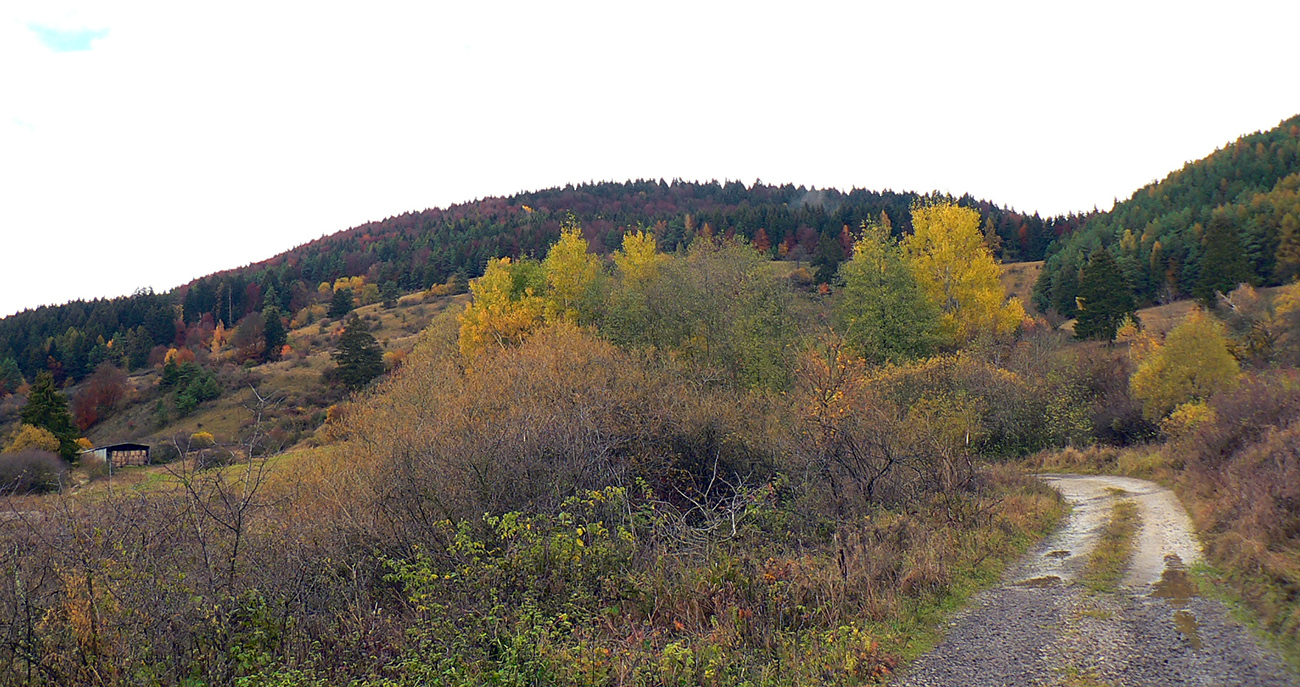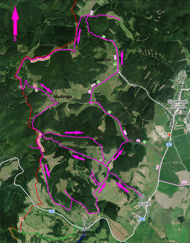 Piatok, večer pred celoslovenským testovaním, zvoní telefón: „Nezavezieš ma do Rudna? Tam ma pridelili do tímu. Ale musím tam byť v sobotu už pred šiestou.“ Hovorím, že samozrejme, ak mi doma auto požičajú. Požičali - no nemohol som si predsa nechať ujsť možnosť legálne sa dostať do susedného okresu! Aj keď len do toho turčianskoteplického :-) Improvizačné bunky v mozgu hneď začali pracovať, ako by som situáciu využil. Lebo síce červenú značku severom pohoria Žiar dobre poznám, ale v tých miestach medzi Závozmi a Vyšehradom je aj mimo značiek veľmi pestrá krajinka - taká mozaika lúk a lesov. A tú sa počas farebnej jesene oplatí poobzerať. Ciest je tam požehnane a kde nebudú, nejako prerazím. Takto pekne nás korona učí prispôsobovať sa. Takže vznikla z toho taká „osmička“ so stredom v doline Rudnianskeho potoka – najskôr som spravil menší okruh na juh od Rudna ponad Jasenovo, potom väčší, na sever cez Brieštie a Hadvigu. Prvé kolečko „zveroodpudivé“, druhé jesenno plnofarebné: