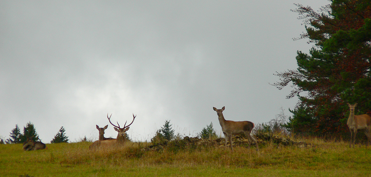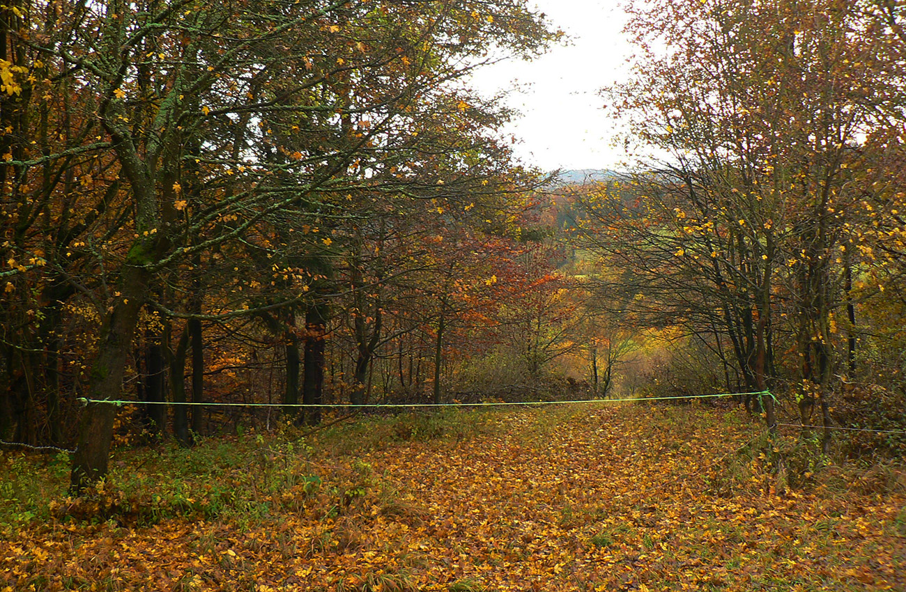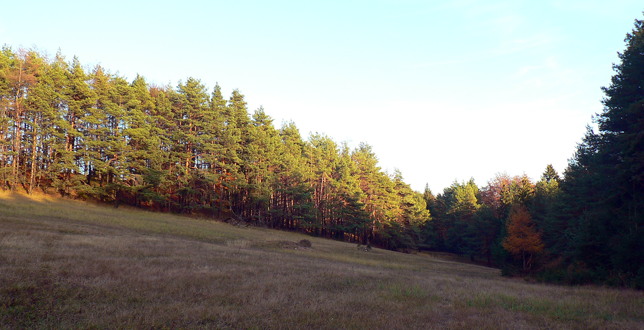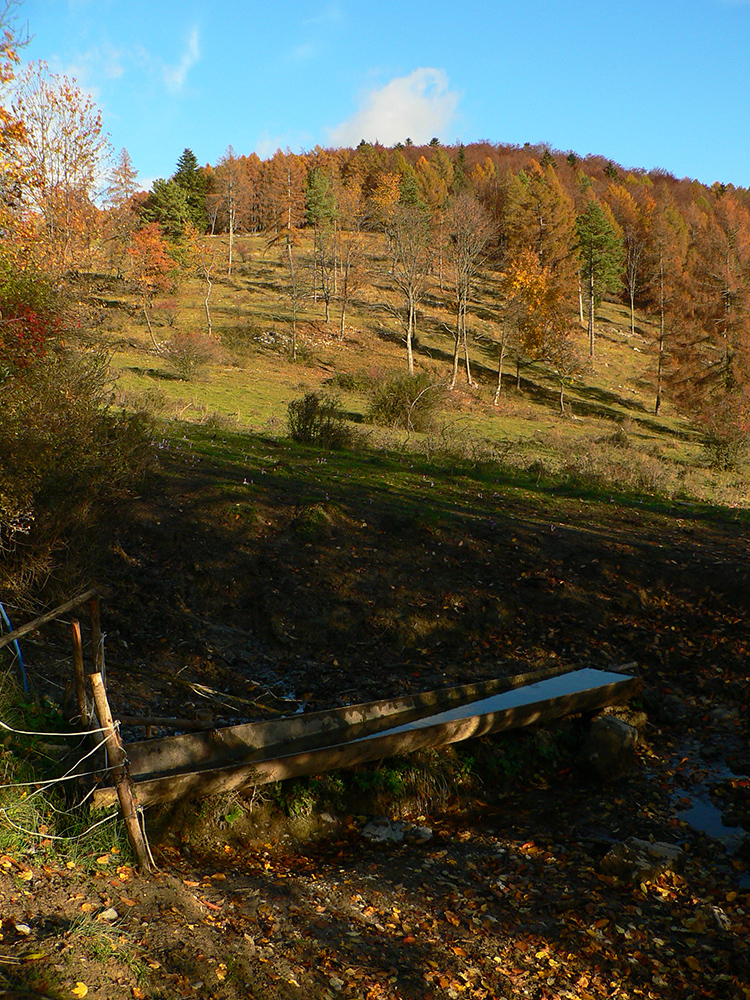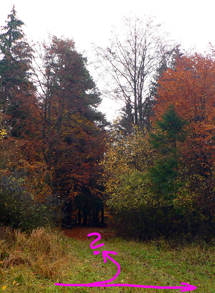 Nazad na červenú som sa dostal na tej istej lúke, na ktorú som ráno vyliezol z doliny. Ale tentokrát ma nelákala cesta nazad do Rudna po dne doliny (veľa mlák na ceste), skúsil som radšej po bočnom hrebeni, cez lúku, kde som ráno fotil tie jelenice. Cesta cez lúku (paralalná s tou dolinovou) bola OK, ale v lese rýchlo zanikla. Nevadilo, prerazil som lesom cez vrchol Vlčej (753 m), poplašil som posledné stádo, tento raz poriadne (aspoň 50 kusov), strmo som zbehol čerstvým rúbaniskom a vynoril som sa znovu na lúkach nad plechovým „družstevným senníkom“, kde som bol už dvakrát. A to už bolo do dediny na skok. Veď bolo aj načase - už sa začalo šeriť. No čo by som chcel, že? Zimný čas a krátko po štvrtej, posledný deň októbrový.