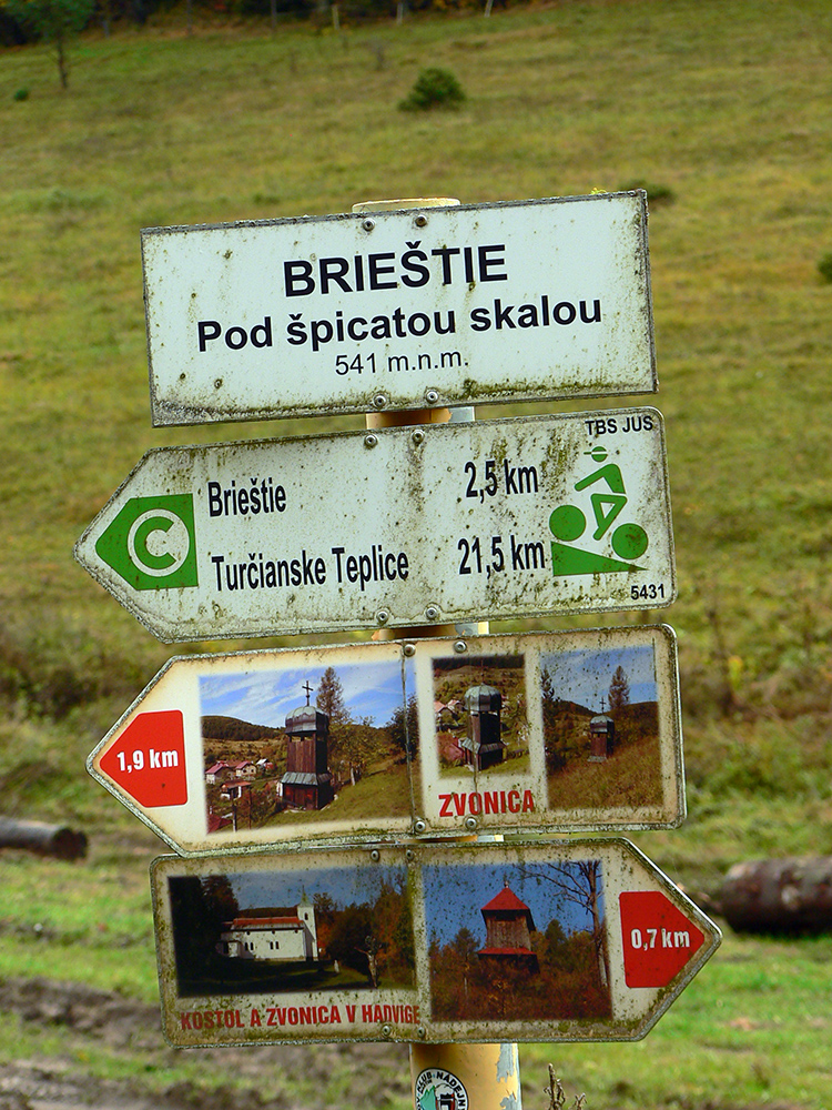 Taaak, vykochaný výhľadmi spustil som sa do doliny a cez protiľahlý horizont som preskočil do susednej, v ktorej už sa krčí Hadviga. Ale až do nej som zdola nedošiel, dám si ju neskôr, zhora. Teraz som odbočil po cyklotrase do Brieštia, zas cez pekné pasienky s voľne rozhodenými kravami. Nasadil som náhubok, aby som hore dedinou neprovokoval miestnych, a peknou lesnou cestou (stále tá cyklotrasa) som vydupal na Repeš – na ďalšiu z tunajších veľkých horských lúk s parádnou chalupou hneď pri východe z lesa, priamo pod Závozmi. Ešte krátka zachádzka za výhľadmi (k Veľkej Fatre a najvyšším kopcom Žiaru) na susednú (ako inak) velikúúú lúku. Cvak cvak a išlo sa nazad, a zas červená „hrebeňovka Žiaru“.