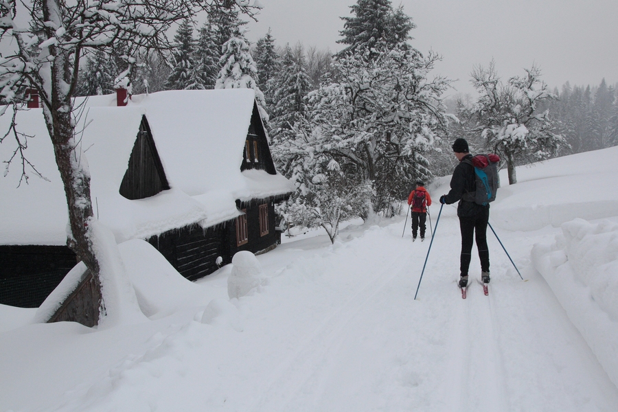 Tohtoročná zima sa konečne rozhodla dopriať kopu radosti všetkým, na bielom prášku závislým. Nielen tým na zjazdovkách a na vrcholkoch končiarov, ale konečne aj ľuďom pohybujúcim sa v nižších nadmorských výškach a v lesoch. Takže skialp bokom, treba vyvenčiť aj bežky. Konečne prichádzajú na rad ciele, ktoré sme dlhé roky odkladali. Javorníky sú známym bežkárskym rajom. Nekonečné kilometre striedajúcich sa lúk a hustých lesov s roztrúsenými romantickými samotami v nenáročnom teréne. Na svoje si prídu určite všetci vyznávači klasiky, už menej korčuliari. Na úpravu Beskydsko-javorníckej magistrály platia dosť nepredvídateľné kritériá, treba študovať všetky dostupné zdroje informácií. Ale minimálne svojpomocná jednokoľajka je tu bežným javom. Najviac ľudí smeruje od Melocíka na Kasárne. Chata na konci a vysoká pravdepodobnosť, že práve tento úsek bude aj strojovo upravený, sem láka väčšinu. My sme si to však namierili presne opačným smerom. Vydali sme sa na prieskum trasy medzi Makovom a Čadcou.