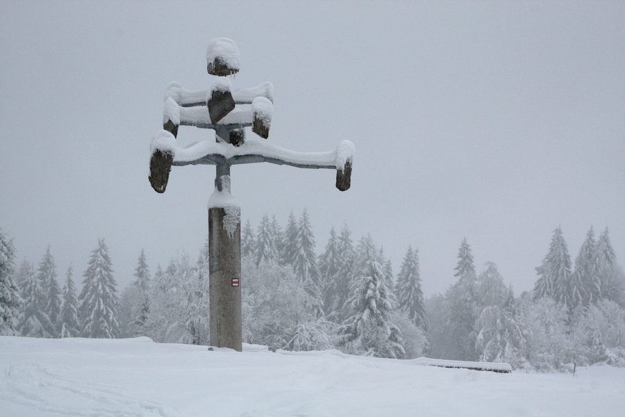 Pohyb hrebeňom je viac - menej jednoznačný. Celá trasa vedie po červenom turistickom značení, sem - tam doplnenom aj červeno-oranžovou lyžiarskou značkou. My sme mali šťastie, že trasu deň pred nami prebehol v celej dĺžke aj ratrak, a tak by sa dalo trafiť aj so zavretými očami. Ale to by sme neboli my, keby sme aj tak na pár miestach nemali problémy :o)