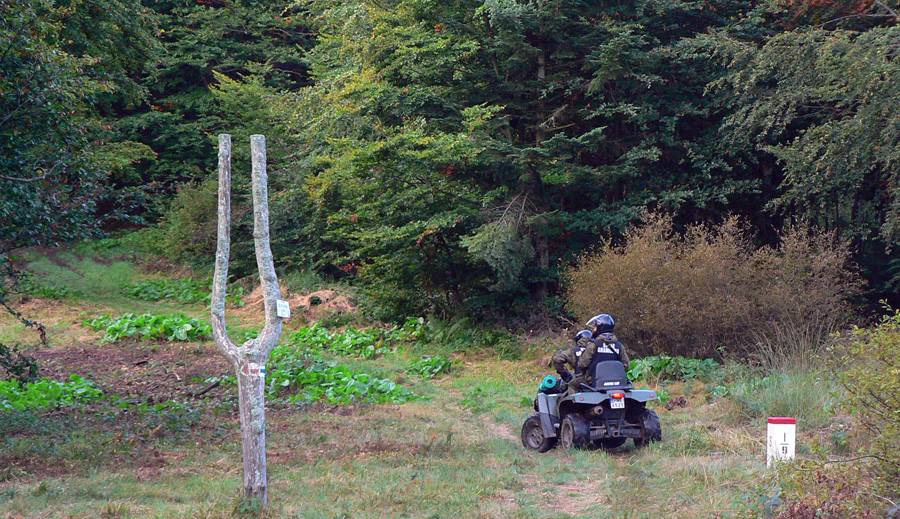 Noc v sedle pod Čierťažou: zo spánku nás budí hluk štvorkolky. O chvíľu tíchne len kúsok od nás. Nechápem: to aký pako sa sem teraz trepal? Ráno pozerám a neverím druhý raz: mašina zapichnutá v kroví, vedľa dva spacáky. O chvíľu sa z nich ale vykľujú poľskí pohraničiari. Pobalia sa, povrčia dookola, popýtajú sa kto všetko tu spal a miznú nazad skade prišli, do doliny. Hmmm, divná služba...