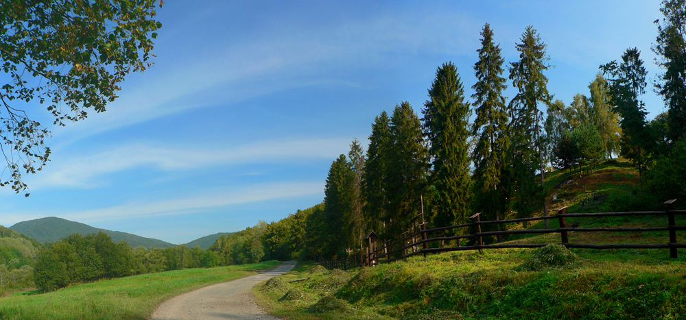 Sme na okraji odlesnenej kotlinky, v strede ktorej čupí Runina. Pole naokolo žiadne, len samé pasienky a lúky, z nich výhľady na Ďurkovec, Veľký aj Malý Bukovec. Cestou ešte jedna „typizovaná“ útulňa nad potokom, ešte jeden či dva lúčne horizonty a sme v dedine. Malé námestíčko, lavička v tieni mohutného stromu, upravený prameň vody s poriadnym žľabom a prístreškom nad ním, vedľa infotabuľa národného parku - všetko upravené, vynovené, človek by tu aj ostal :-) Ale autobus je tu o pol hodinky a začína 10-hodinová cesta domov. A to už je iný, „nekonečný príbeh“.