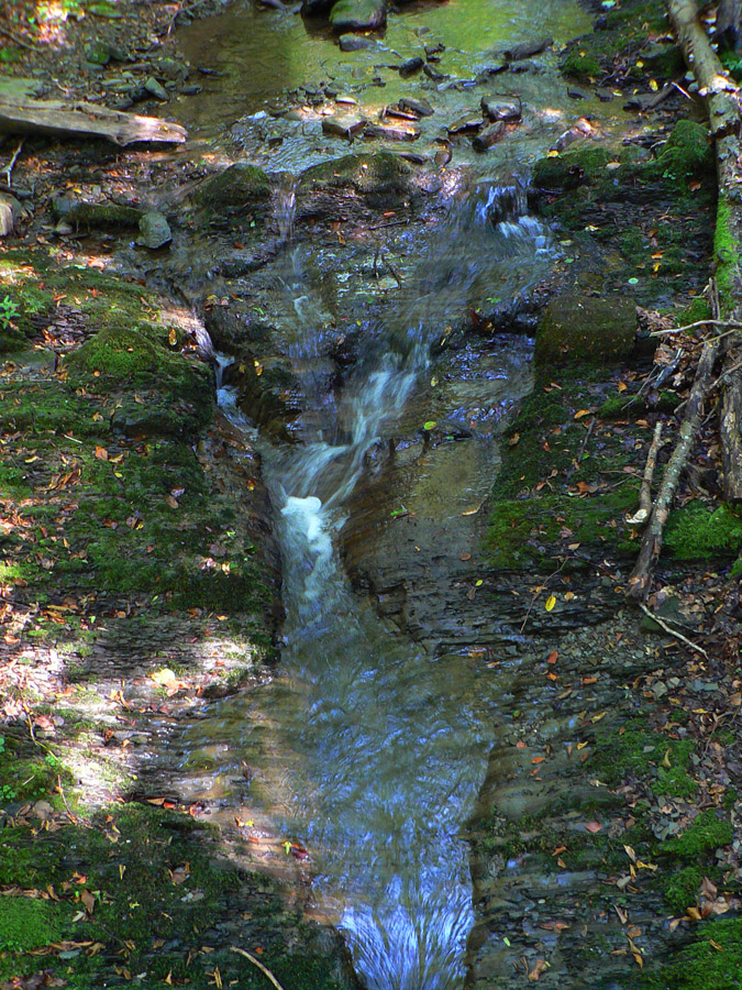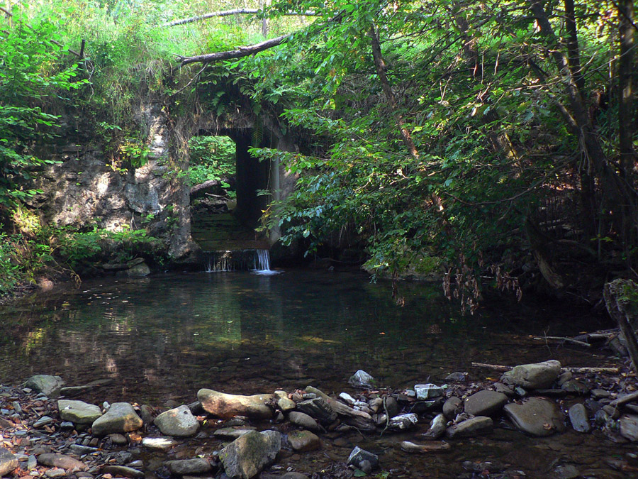 Nezáživné potkýnanie po rozbitej tvrdej lesnej ceste netrvá dlho, keď nás na križovatke, pri ďalšej opustenej osade Smerekovica, značka odhodí dole k potoku. Cez mostík a do kopca za ním, dole a zas hore, niekoľkokrát takto, dokonca aj po potoku kúsok - a les sa rozostupuje definitívne.