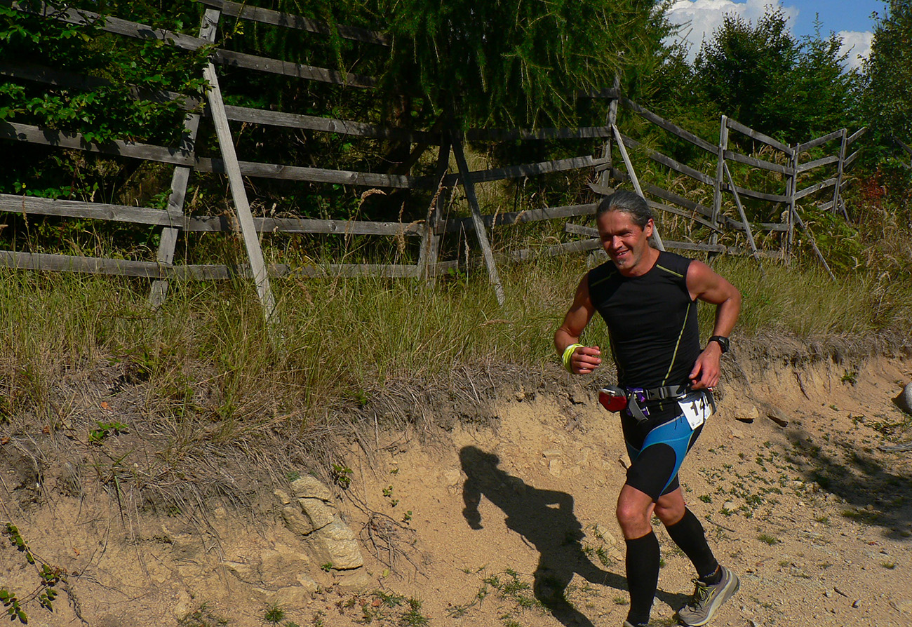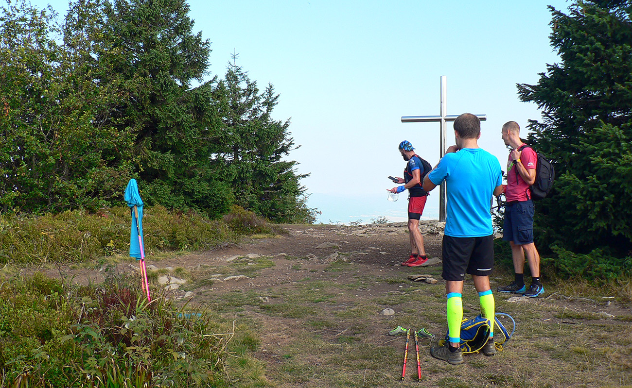 Skoré dopoludnie, vyššie nadmorské výšky a tieň v lese – celkom príjemné. Ale ako som zbehol na lúky pred Veľkým Poľom (K3), ako by ma čosi ovalilo. Jasné - ten žeravý vánok od juhu... Telo hneď začalo podvedome brzdiť. A viacerí potom v cieli krochkali blahom, že sa už dlho tak kvalitne nepovarili vo vlastnej šťave. Ako málo stačí masochistovi ku šťastiu... Lebo z K3 sa ide do kopca, po lúkach. Do prudkého kopca! Po lúkach otočených na juh!!! A just s vetríkom do chrbta a just slabým, presne s rýchlosťou chôdze, zdalo sa mi. Ako keby som stál v saune. Až na vrchole lúk, keď sme sa stočili doľava dole, neskutočná úľava!