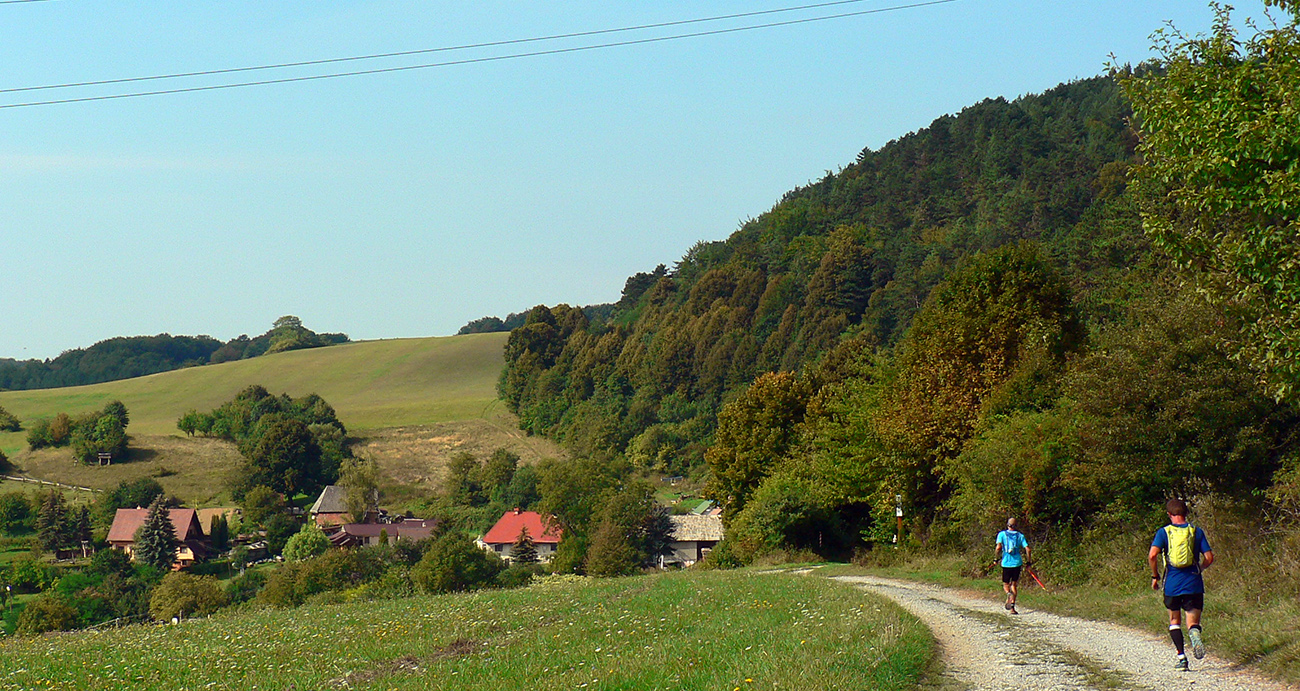 Ale cez Tríbeč som mal aspoň zase tieň – aj keď tam sú tie lesy nejaké redšie. Aj tradičné drevené ploty chrániace viac savanu (či čo to tam je) ako mladý les, aj pováľané ploty, kde som našťastie žiadny trčiaci klinec nechytil. Ale stíhal som vnímať čo mám pod nohami, lebo to už bolo skôr plazenie ako beh. No a tá strmina s preliezačkami pod Javorovým vrchom, no rozkoššššš!