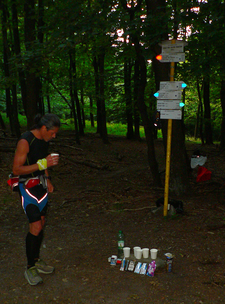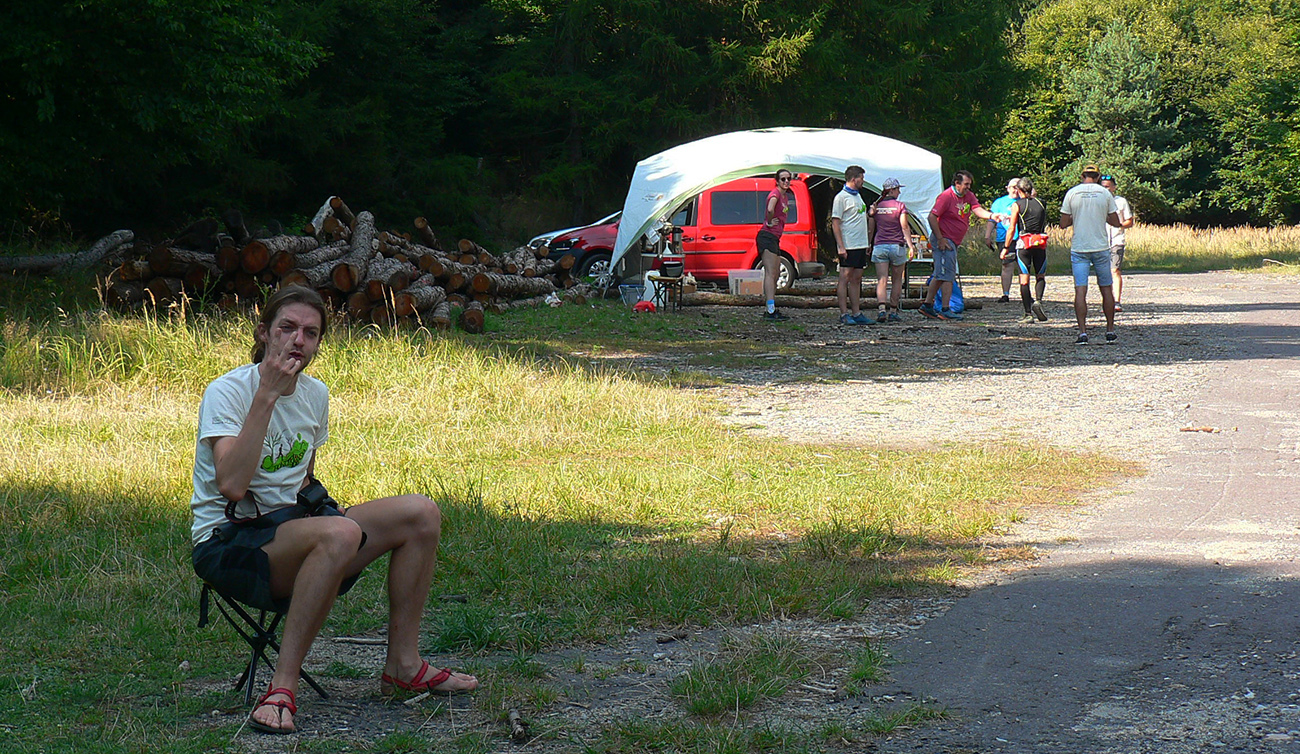 A ešte väčšia úľava za Penhýblom, kde sme sa zase ponorili do tieňa lesa. Ani tie nekonečné monotónne asfalty mi akosi nevadili. Len sme sa tam štyria zgrupli a skoro sme sa pobili o vodu – na novo vybudovaný prameň pod Sokolcom nás orgovia upozorňovali už skôr. Len veľmi štedro netiekol, no. Ale oceňoval som už pomaly každú mláku. Len ich cestou nebolo moc. Potom ešte studňa na Brezovom štále – životabudič ako bič! Okrem toho, že tento rok bola tajná kontrola práve tam. Sršne mali tento rok pauzu, ponad hlavy bzučal len dron.