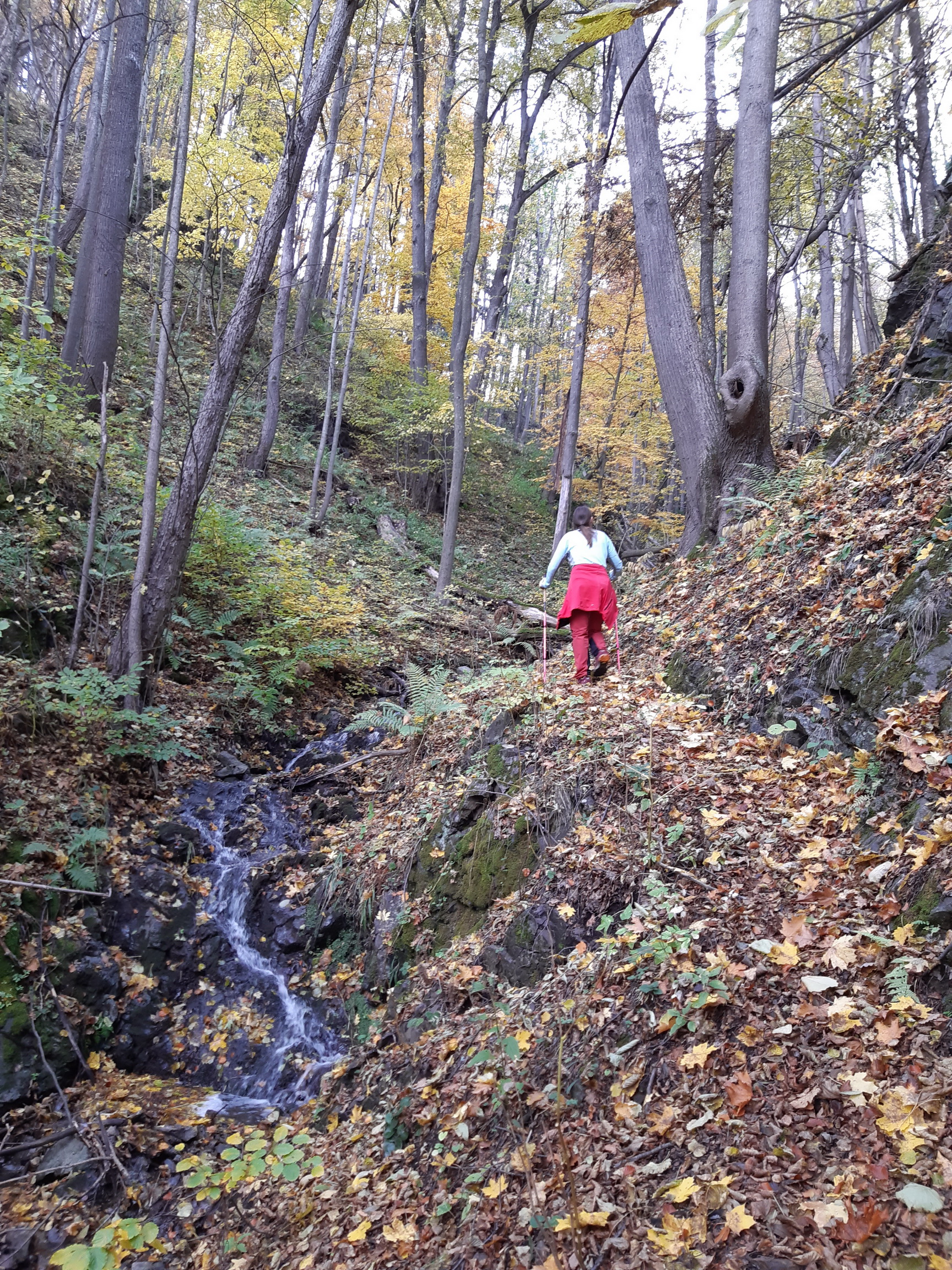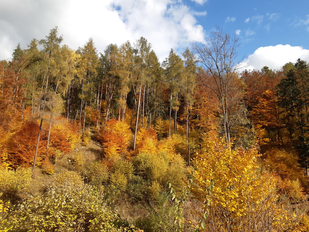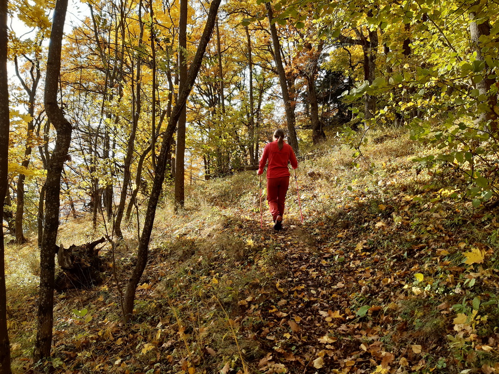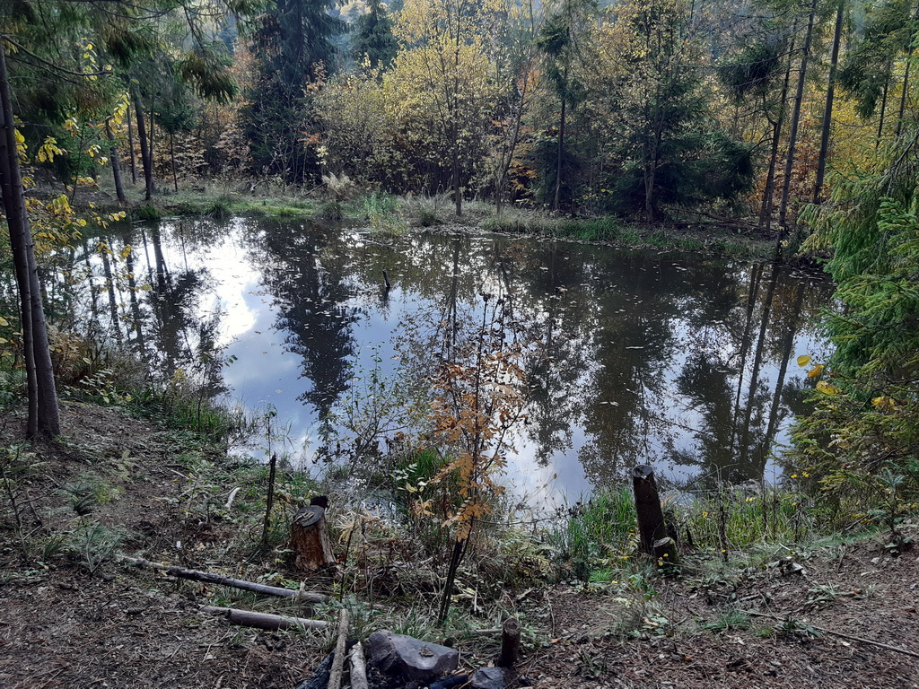 Výhľady sú znásobené farbami jesene. Túto časť traverzu už poznáme detailnejšie. Nielen z prechádzok ale aj zo sedla horského bicykla. Parádny fitnes okruh ukončujeme ešte malou zachádzkou okolo jazierka ktoré je len kúsok od auta na Visovej. Veľa ľudí chodí okolo ale nie každý o ňom vie.