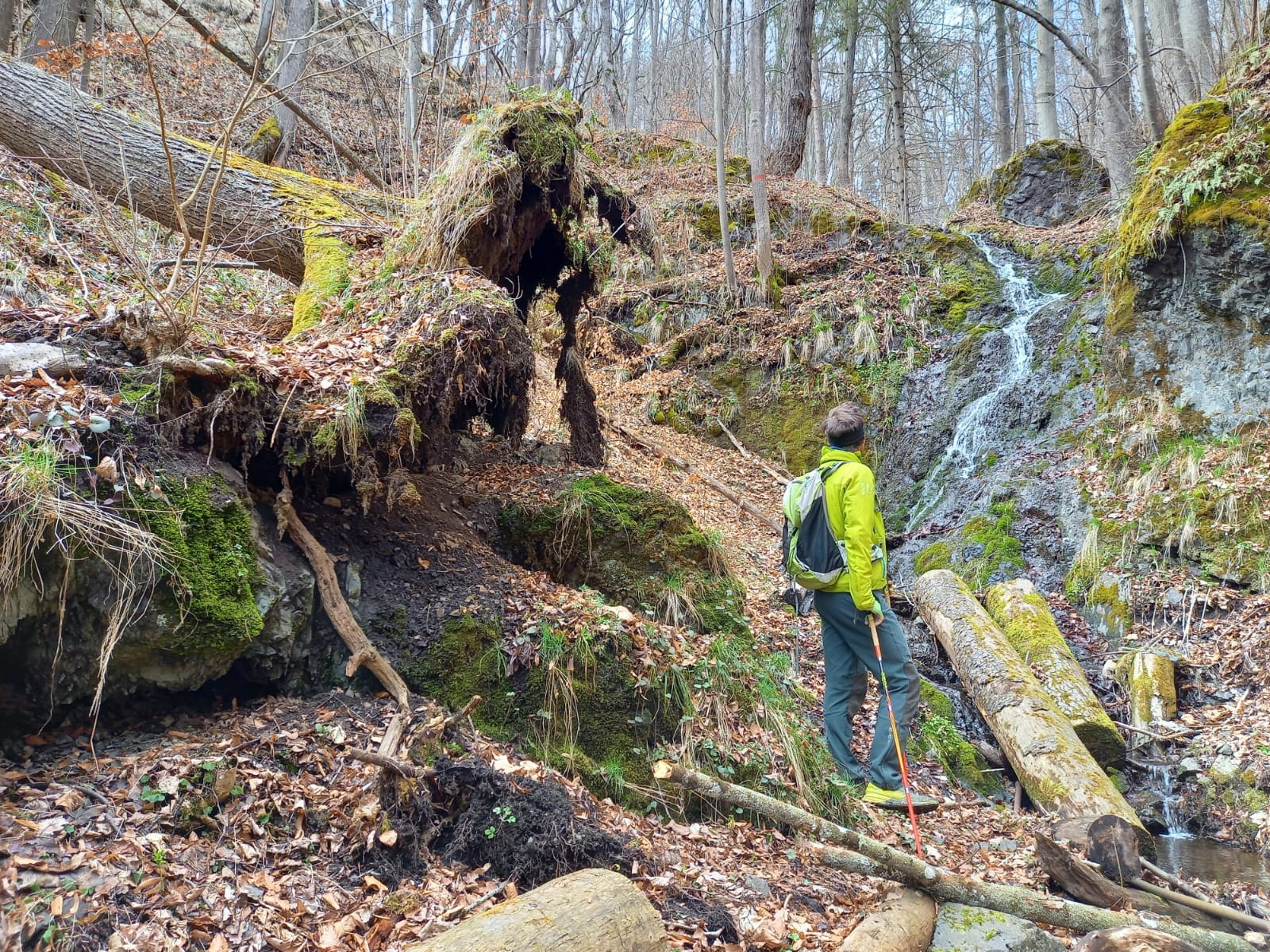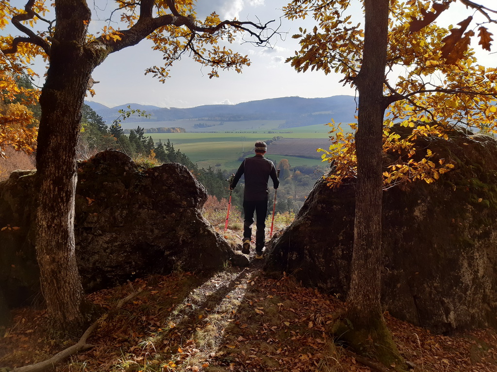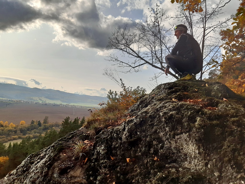 Od auta vyrážame po širokej štrkovej lesnej ceste celkom nedávno rozšafne vďaka eurofondom zmodernizovanej do slušných rozmerov. Po pár kilometroch prídeme ku rázcestníku kde začína spomínaná zelená náučná značka. Odbočujeme vpravo, kúsok po lúke a vnárame sa do lesa. Zo zelenej značky ešte raz zídeme dole aby sme za chatkou s názvom Zelená žabka konečne našli vyhliadku na skale. Už dlhšie sme si to tu obchádzali kým sme sa dostali až na ňu.