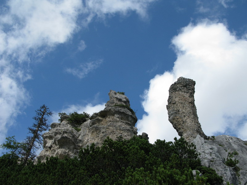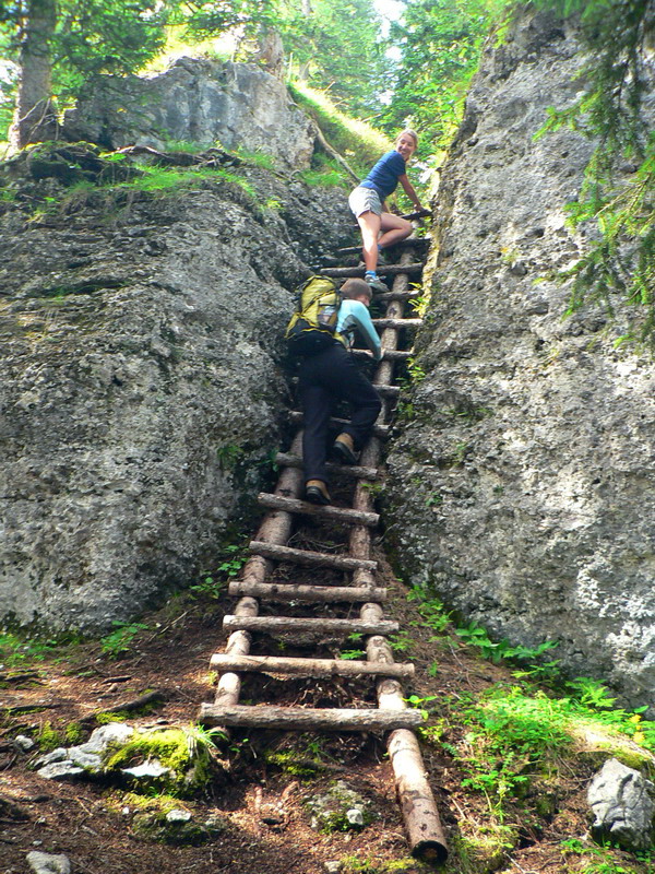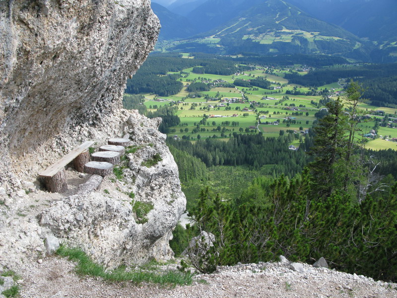 Ramsau am Dachstein slúži ako východisko pre túry do spomínaného masívu. Ten však ako najvyšší v okolí môže pritiahnuť aj nejaké mráčiky a čo potom? Trepať sa hore, keď je na hrebeni usadená olovená deka sa moc nevyplatí. Táto oblasť však ponúka viac, než len vrcholové túry a pekné ferraty. Z dedinky Ramsau sa dá vybehnúť na párhodinový okruh (záleží od rýchlosti) cez Jungfauensteig. (chodník č.9) Kamenné panny sú zaujímavé kamenné útvary, je to vlastne akési skalné mesto na južnom úbočí Dachsteinu nad osadou Ramsau.Túru môžete naplánovať podľa mapky, ktorú dostanete na informáciách, alebo sa necháte viesť kvalitným značením. Na fotke z kempu vidieť, že zablúdiť veľmi nie je kam. Po ceste späť (odporúčam okruh okolo chaty Austria) sa môžete zastaviť v horolezeckom múzeu pri spomínanej chate. Zostup je najpohodlnejší po zvážnici od chaty do Ramsau. V dedine sa vynoríte rovno oproti campu.