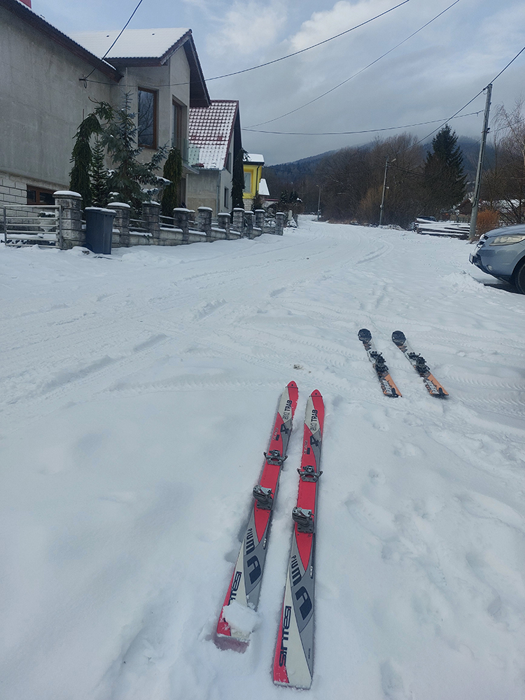V noci z nedele na Troch kráľov nadzigalo snehu v Turci neúrekom, asi 2,5 cm. Predtým pár dní asi 1,5 cm. Aj by som si povedal, že počkám, kým to množstvo sadne, ale zrazu volá J.J., že jej volal dáky kamoš, že na Chleb SA DÁ OD PARKOVISKA na Zajacovej a že horná polka Generála sa dá aj zlyžovať! Pretože zmysel pre nezmysel mám dobre vyvinutý, neváhal som a čuduj sa svet, o hodinu už sme sa obúvali do lyží pri posledných domoch v Šútove!!! V podstate som sa obetoval, aby nebola len sama za divnú. Ale fakt, aj viac tam bolo (možno až 4,2 cm), čerstvého, už síce mokrého, ale hore ulicou od áut ujazdeného. Žiadny základ? Žiadny problém! Budeme hviezdy internetov a keď to dáme „kártukár“, to bude sláva! Akurát ktovie prečo mi chodili po rozume spomienky, ako som sa kedysi smial maďarskému lyžiarskemu zájazdu, ktorý sa na Malinom Brde učil oblúčiky na námraze.