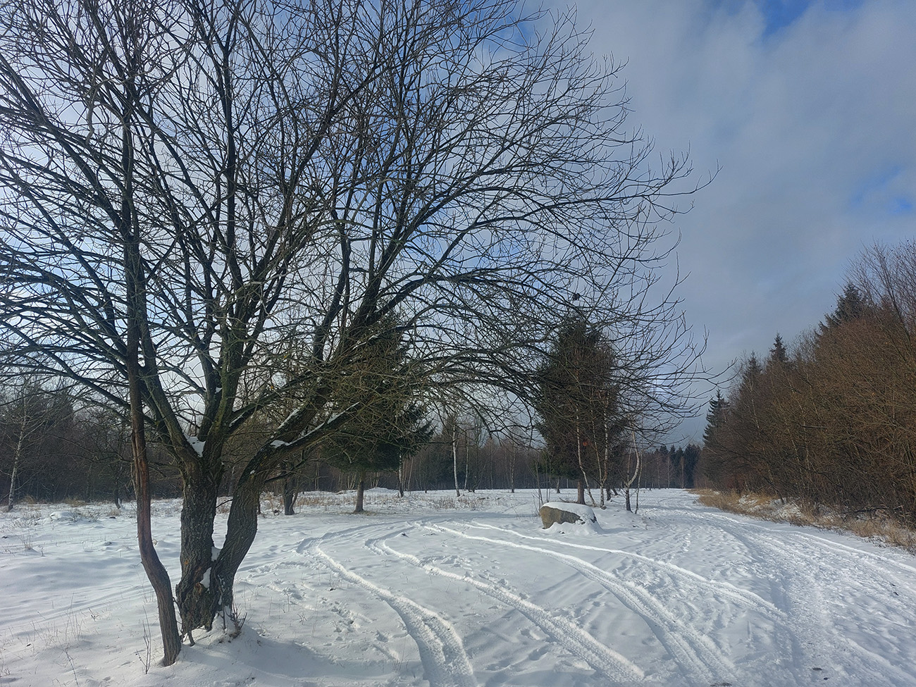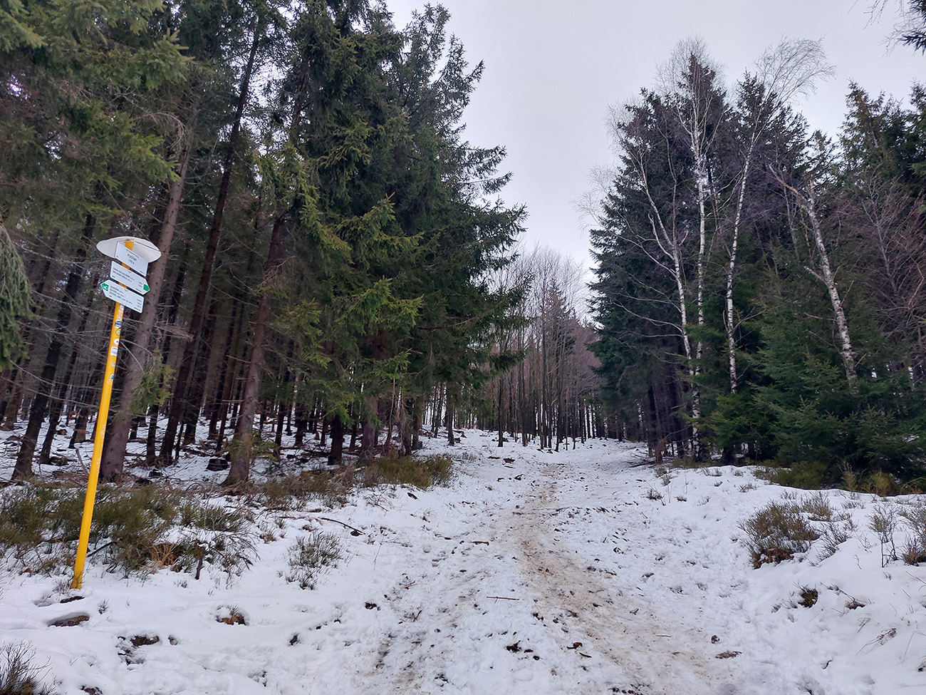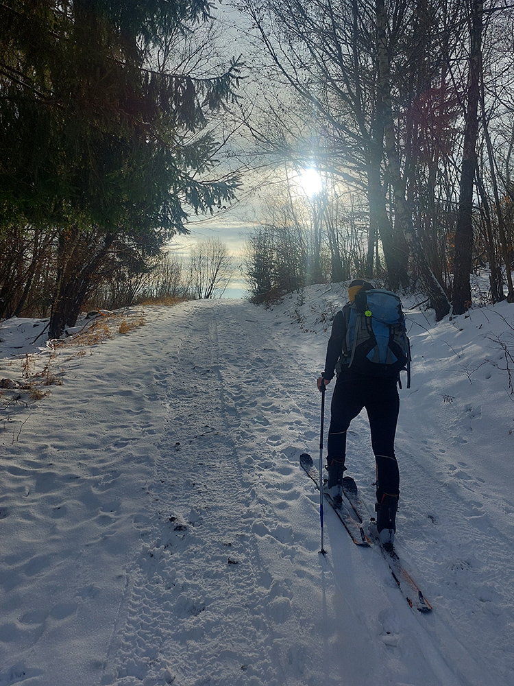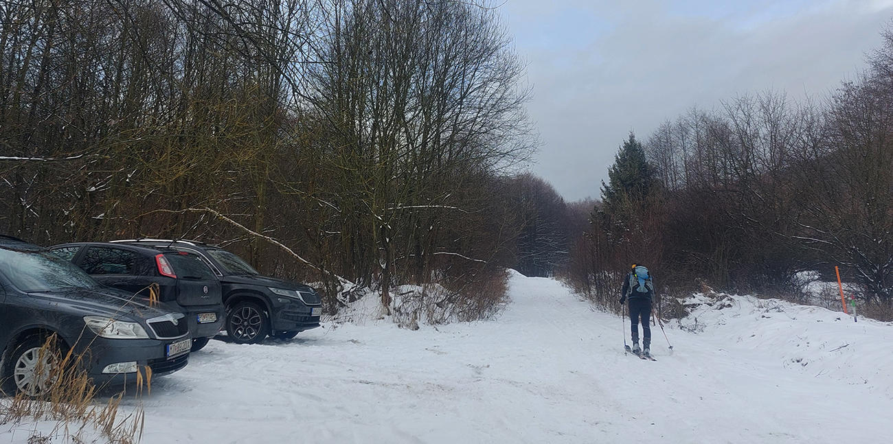 Jeden exemplár pred nami išiel z drevoskladu doľava, strmo po skialpovom chodníku, a potom hore hovoril, že na tom lístí to ani moc nepodklzovalo. My lenivší sme sa vybrali rovno po ceste, kde koľaje od áut, zásobujúcich chatu, vyzerali použiteľne. Väčšinou aj boli, no...