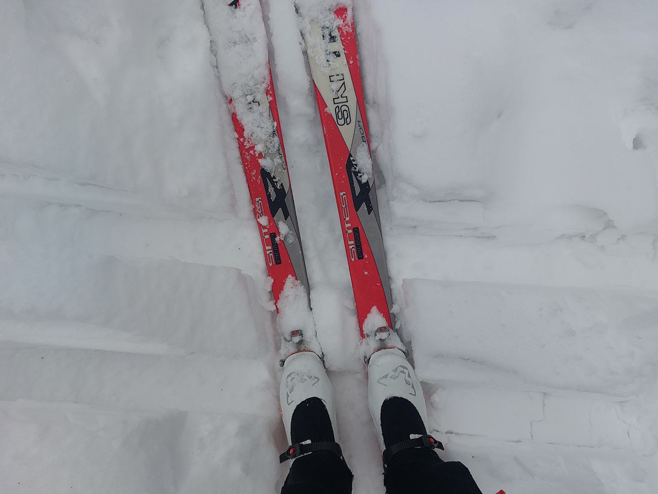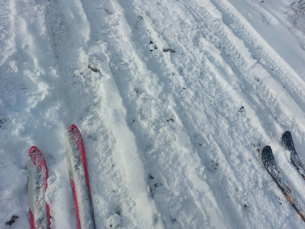 Dokonalé skialpové podmienky na Generáli samozrejme zničené pešiakmi, ktorí sa tam navyše vozili aj na sáčkoch, lopároch a boboch, šľak ich traf! Sme museli normálne až cikcakovať! No a čo, keď aj pomedzi čučoriedky?