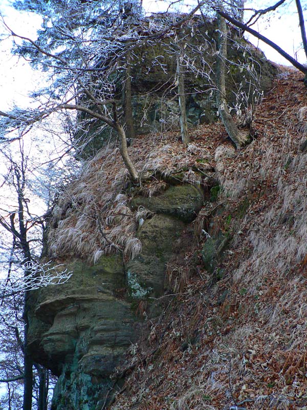 Ponad tunel len prefrčím, nasleduje najkrajšia časť hrebeňa so skalnými vyhliadkami, oknami a jaskyňami a to si treba vychutnať! Dnes sú bralnaté ozdoby hrebeňa ozvláštnené námrazou a útržkami riedkej hmly. Skalka a výhľad z nej (hlavne na východ) je pre dnešok tou „čerešničkou na torte“. Trochu ho kazí len stavenisko novej vyhliadky (dosť diskutované). Potom už len presun smer Bystrické sedlo a ponáram sa do mrazivého mlieka, v ústrety ďalšiemu päťdňovému pobytu v inverzii :-(