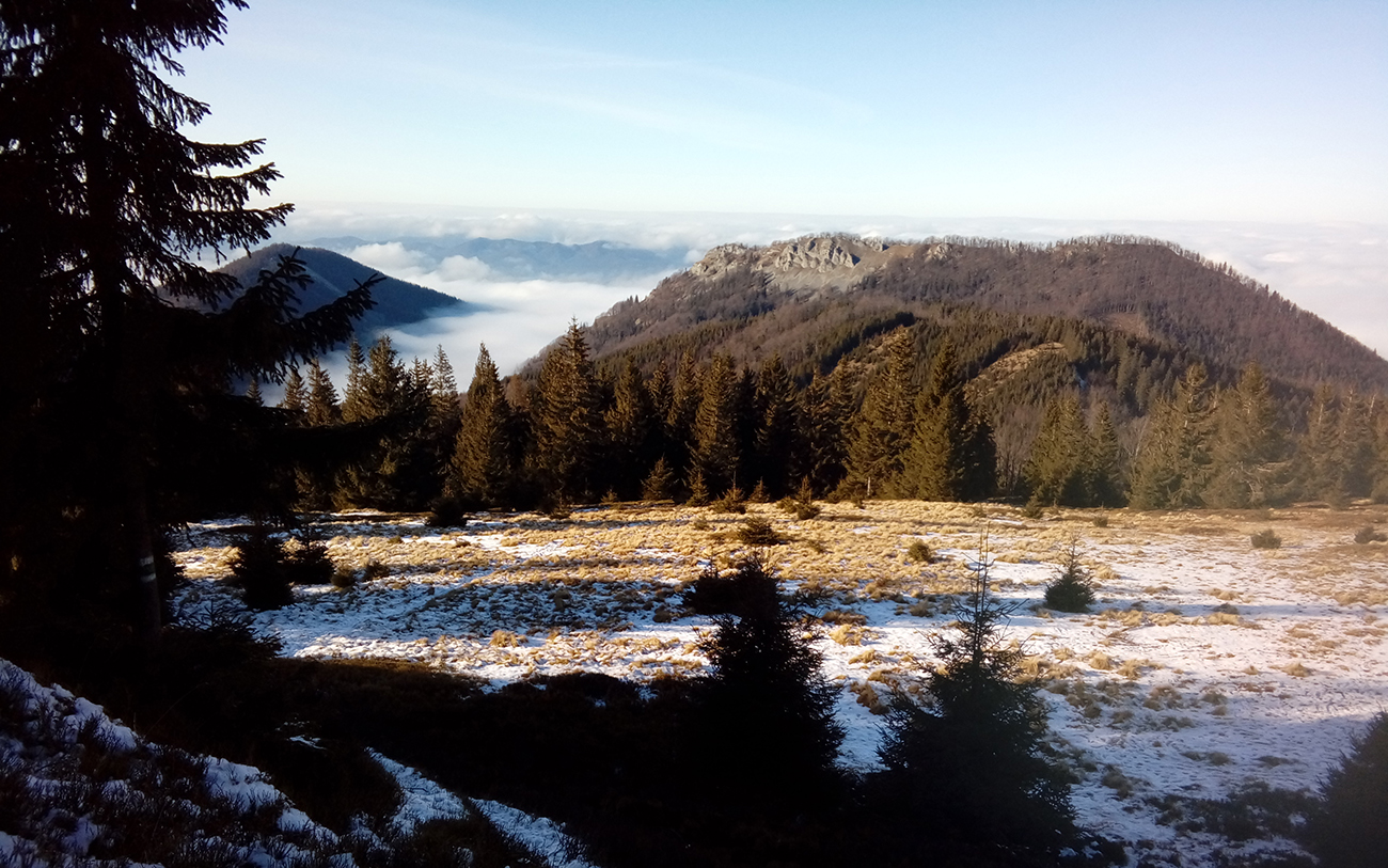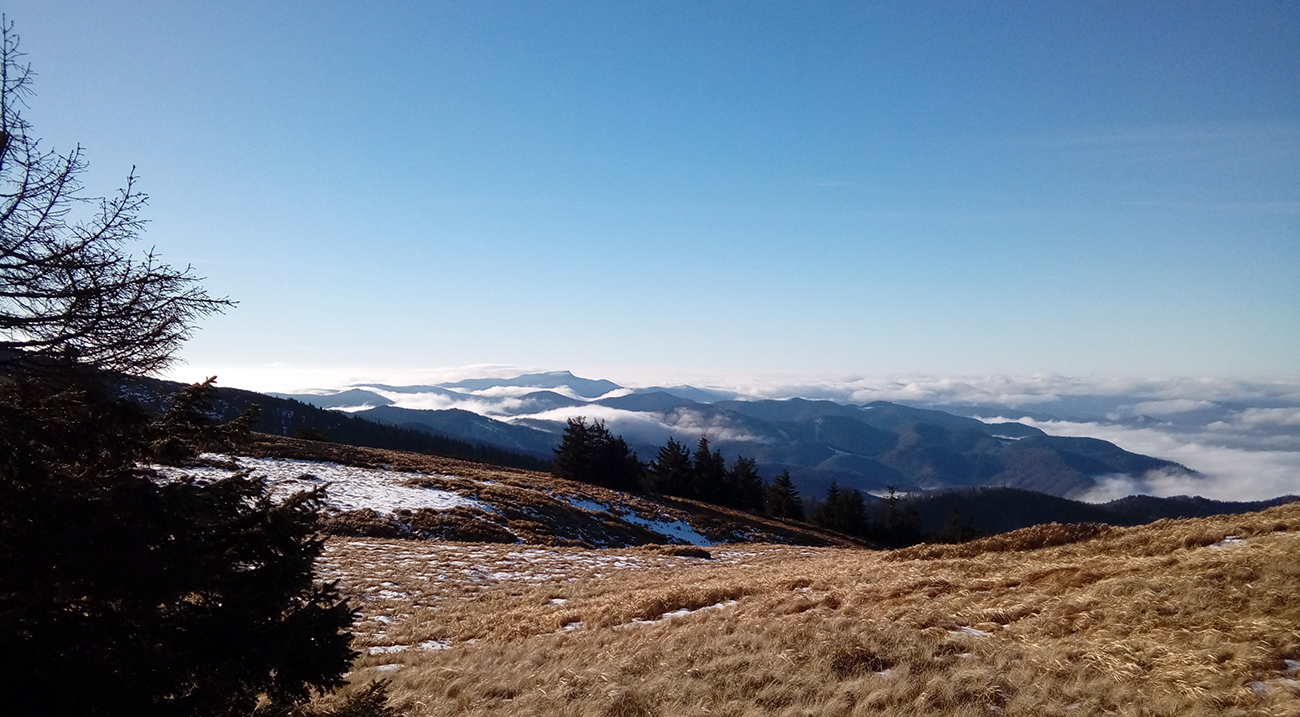 A to je skoro všetko. Potom už spod Krížavy nazad do sedla Prašivé stretám niektorých výletníkov druhý raz, ako sa vracajú z Minčola. Ešte traverz na Dlhú lúku a pod ňou sa už vnáram do hmly, s patričnými efektami na jej hranici. Hneď je citeľne chladnejšie, ale zahrieva ma dlhý boj s gravitáciou, až dole do mesta. Program to je inak tak na 7-8 hodín podľa Hikeplannera, tak pozor! Najviac času zožerie výstup a zostup z hrebeňa, takže celkom seriózna prechádzka na krátke zimné dni. Ale samozrejme dá sa skrátiť, ak sa vyveziete autom na Hole.