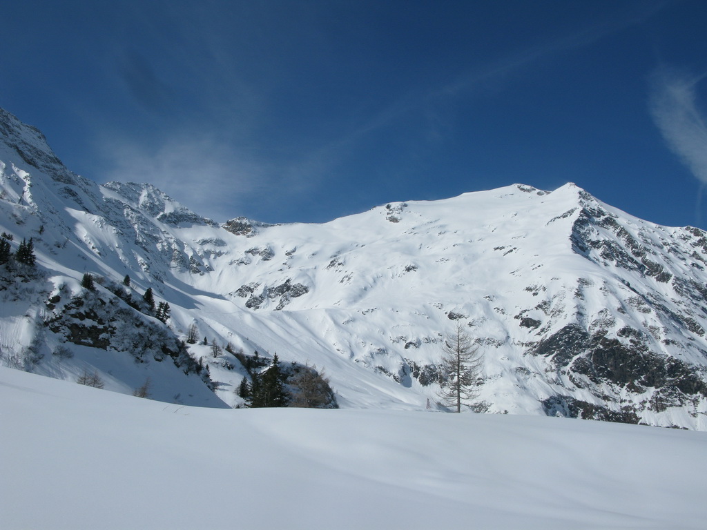 Jeden z najkrajších a najobľúbenejších skialpových kopcov v Alpách. Aj takúto informáciu sme mali o našom cieli, keď sme vykladali lyže z auta na parkovisku v Raurisertali. V lete sa po zaplatení mýta dá vyjsť autom až na parkovisko vo výške cca 1500 m. Ale v zime parkujeme na veľkom parkovisku vo výške 1272m.