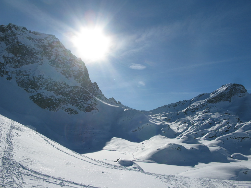 Na túry sa z Julierpassu dá vyrážať na obe strany, čiže na sever i na juh. Už od decembra 2014 tu panujú výborné snehové podmienky. Samozrejme rekordy z minulej zimy nie sú ani zďaleka ohrozené ale zato je tu veľmi slušný snehový základ. Dajú sa robiť bez problémov všetky základné túry bez nejakého kľučkovania pomedzi kamene.