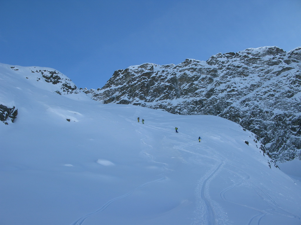 Oblasť okolo známeho zimného strediska St.Moritz ponúka obrovské možnosti na skialpinizmus. Veľkou výhodou je práve variabilita týchto možností. Dá sa tu naozaj vybrať túra v každom počasí a výhodou je, že aj v slabších zimách sa pri snehovej biede dá nájsť niečo pekné. Zatiaľ čo zima 2014/15 začína veľmi slabo, čo sa snehových podmienok týka tak práve oblasti okolo Julierpassu sa to akoby netýkalo. Na túry sa dá vyrážať od auta zaparkovaného na niektorom z parkovísk pri hlavnej ceste spájajúcej Engadin so Švajčiarskom. Tejto oblasti by sme mohli dať kľudne prívlastok tajný skialpový raj.