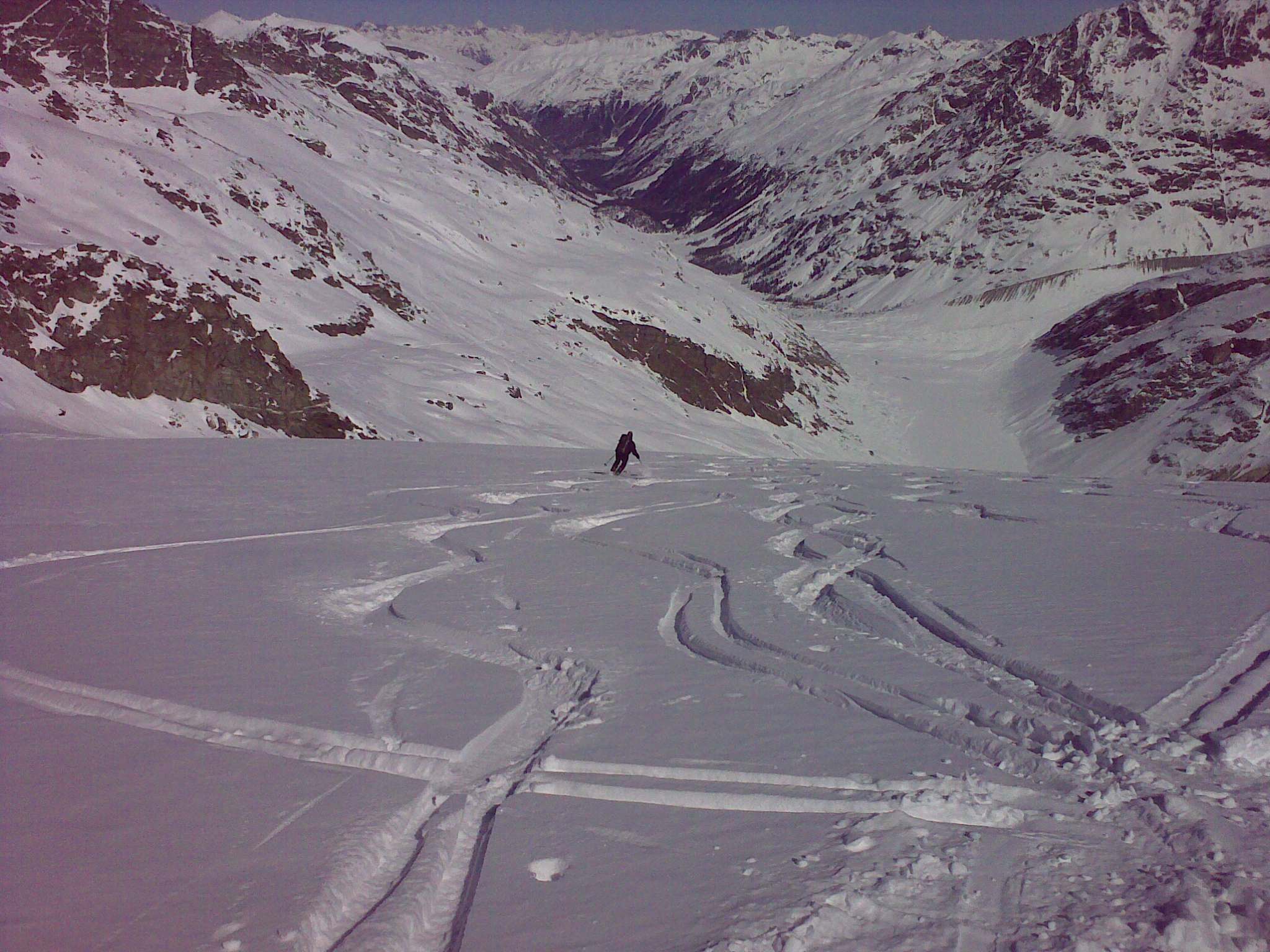 Štartoval som z doliny Vall Roseg smerom na Coaz Hütte, kúsok pred chatou som odbočil vpravo a pripojil na „výšľapovú diaľnicu", ktorá vedie od vrcholovej stanice Corvatch. Tam som sa stretol s kolegom, ktorý zlyžoval z Corvatchu cez ľadovec Georgeus. Výstup pripomína výstup na Cevedale cez Sulden Spitze. Po dosiahnutí prvého vrcholu treba odlepiť pásy a zlyžovať asi 200-250 výškových metrov a pokračovať z druhej strany už priamo na Chapütschin.