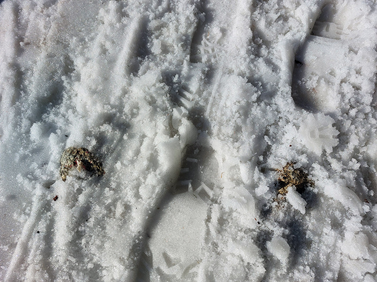 Odjazd popri potoku k mostíku, to bola profícky vedená stopa, ktorá ale už ľadovatela. Podobne ako letný chodník smer Trigan, po ktorom sme následne pohrkotali pásmi. Ale aj pod stromami bol nejaký čistejší ako ráno a zamrznuto suchší (pešiaci žeby premiesili tú špinu?), tak sme sa prepásovali relatívne hlboko do lesa. A na pohľad by sa dalo na lyžiach aj dole z Triganu, ale na druhý pohľad už bolo vidieť pirane, striehnuce pod hladinou. A už je tam aj úzko na brzdenie. To je všetko (viac v galérii), už sme potom len spláchli kofčou/pivom ten prach, čo sa nám v krkoch usadil pri prechode cez nekonečné parkoviská. Dobre to vyšlo, len keby sa viac vládalo! Nevadí, možno nabudúce.