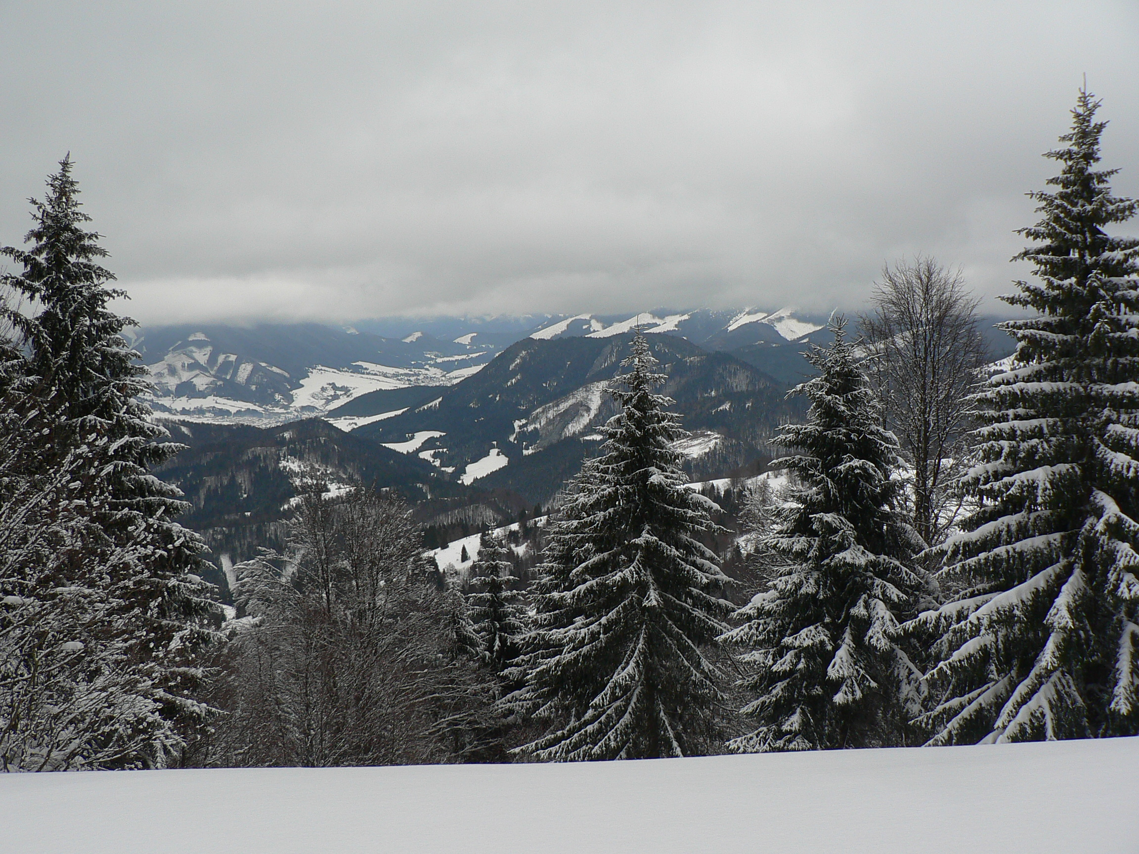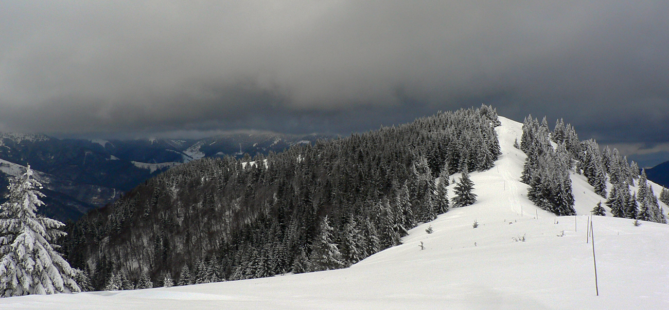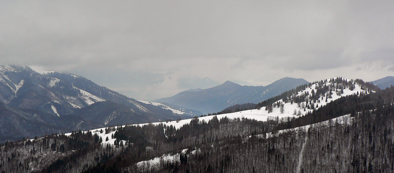 Príjemných 1403 preto, lebo mraky sedeli zakvačené na hrebeňoch Veľkej Fatry aj Nízkych Tatier, okolo Zvolena sa to ale aspoň trhalo a chvíľami bolo aj celkom do diaľok vidieť. Dokonca aj výpary ružomberskej celulózky :-) No a keďže ešte minulý víkend boli doliny suché, bolo načim vymyslieť, kade hore. Dúfal som, že po tej revúckej zjazdovke sa bude dať aj dole...