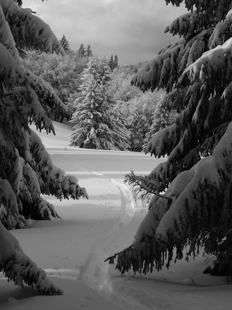 Hej hej, napadlo aj v dolinách, konečne. Ale nie zas tak, aby som sa motal okolo mesta. Zvolen nad Donovalmi má príjemných 1403 m. Vyštveral som sa naň po žltej z Revúc - popod vlek, cez jeho nižšieho brata (1372 m), pokračoval som na Motyčskú hoľu a cestou nazad som ešte skontroloval rozhľady z bočného hrebienka smerom k Čiernej hore. Keby bolo trochu viac času, doprial by som si aj trochu oblúčikov z Malého Zvolena na východ, vyzeralo to tam dobre: