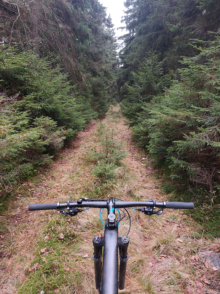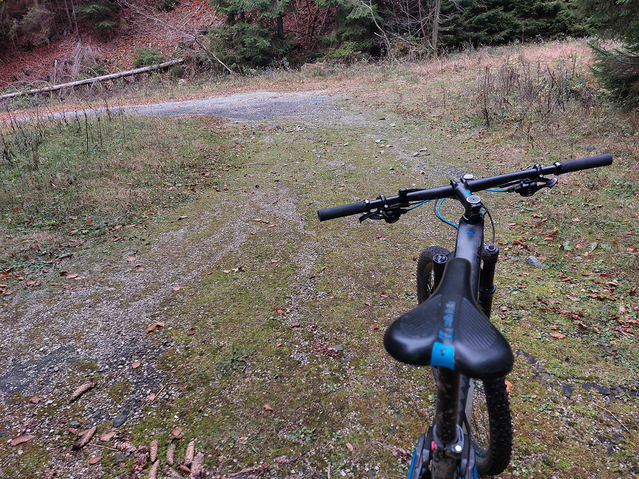 Tak nazad dole a z križovatky do ešte miernejších sklonov po príjemne praskajúcej šotoline, smer sedlo (alebo skôr križovatka) Široký peň. Cestou jedna poriadna zákruta, okolo prehľadné lesy a šírka aj pre kamión. Vynoril som sa na tej križovatke prvý raz, ešte dva razy som to mal v pláne, chystal som sa to tam poriadne zauzliť.