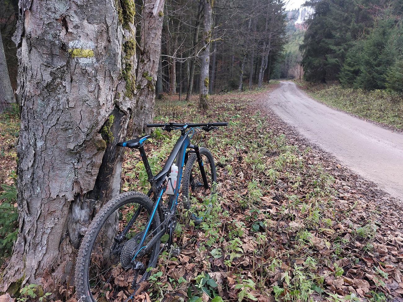 Na úvod dve malé odbočky hneď nad Štubňou. Prvá za výhľadom na ranný Turiec, ale hneď, ako som z cesty zišiel, lúka pod kolesami začala čvachtať. Potom ešte zachádzočka po lepšej ceste, že čo za hacienda sa na jej konci skrýva – a to len vodojem. Okej, tak nazad, popod lom a do lesa. Zatiaľ to bolo plnofarebné: