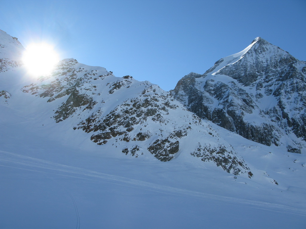 Šliapem po zjazdovke, nad vrcholom je mrak. Dnes to asi nepôjde, premýšľam v duchu, ale ako naprogramovaný šliapem stopou, ktorú som si včera prešiel. Prichádzam pod žľab, hore je stále mrak. Medzičas mám hodinku a pár minút. Ťažko sa rozhodujem: "Ísť smerom na Cedescpass a mať pekný deň na slnku, alebo to predsa len skúsim?"