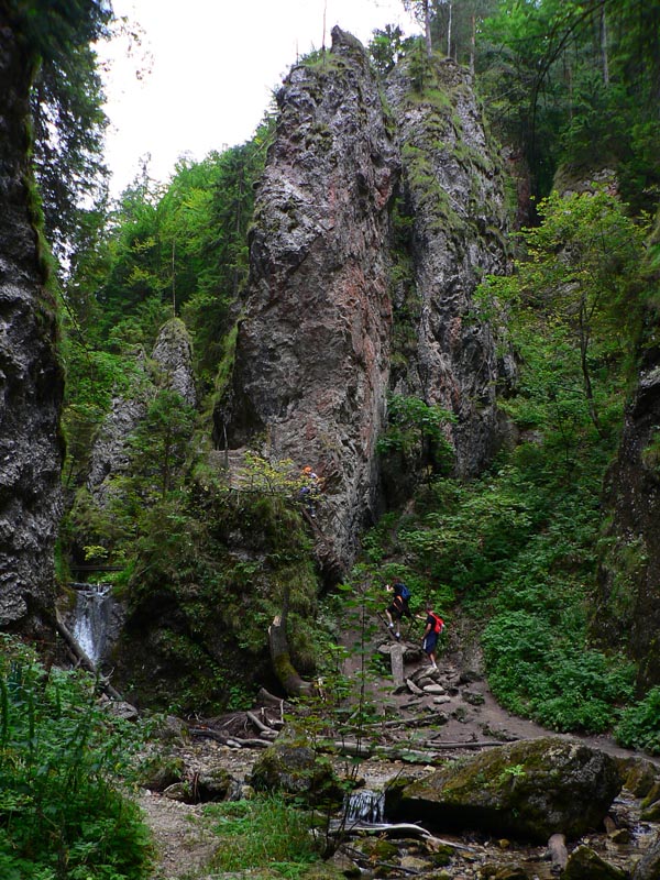 Tak sme teda došli. Užili sme si výhľady, ale aj smrad – tieto chodníky sú jedny z najviac frekventovaných a na konci suchého leta sa pod každým kríkom váľa nejaké to h... O bielych použitých vreckovkách ani nehovorím, plastového odpadu sme nazbierali za tašku, čo dodať? A kto je schopný odhodiť do trávy medzi skalné veže plechovku od piva, ten musí mať tie hovná aj v hlave :-) Už aby poriadne zapršalo! A keď už vodu spomíname, treba si nabrať na začiatku – jediný pramienok, kde sa dá doplniť (okrem bufetov) je v kaňone kúsok nad hotelom Diery. Potom až na konci, dolu v Obšívanke. V Tiesňavách sa asi nik nenapije, predsa len ten potok zbiera všetko z celej Vrátnej :-)