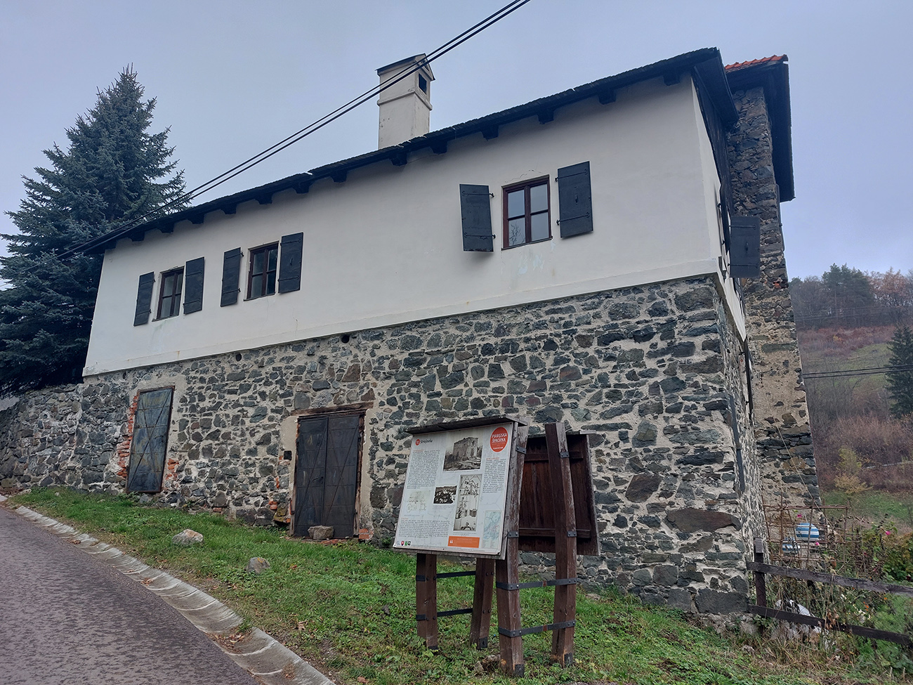 Tam pod „Strojovňou“ sme červenú už naveky opustili a daváj hore dedinou. Aby sme sa po lúkach a znovu po chodníku A. Kmeťa dostali naopak k jednému z najmladších banských diel, k šachte Roveň, z ktorej ale ostala už len zamrežovaná diera v zemi – zato ale hlboká vyše 700 metrov. Pomedzi šachtu a kalváriu ešte kúsok to bolo do kopca a potom už nasledovalo „veľké finále“.