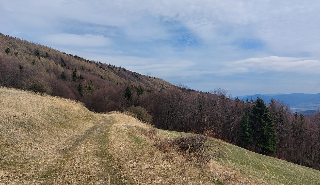 Prevažne z kopca po rozhraní Valčianskej a Slovianskej doliny je to už estetickejšie, lesy krajšie a plynulý zostup na žltú značku a k hornému okraju lyžiarskeho strediska vedie po príjemnejších cestách. Aj cez veľkú lúku na južných svahoch, sklonených už do Slovianskej doliny.