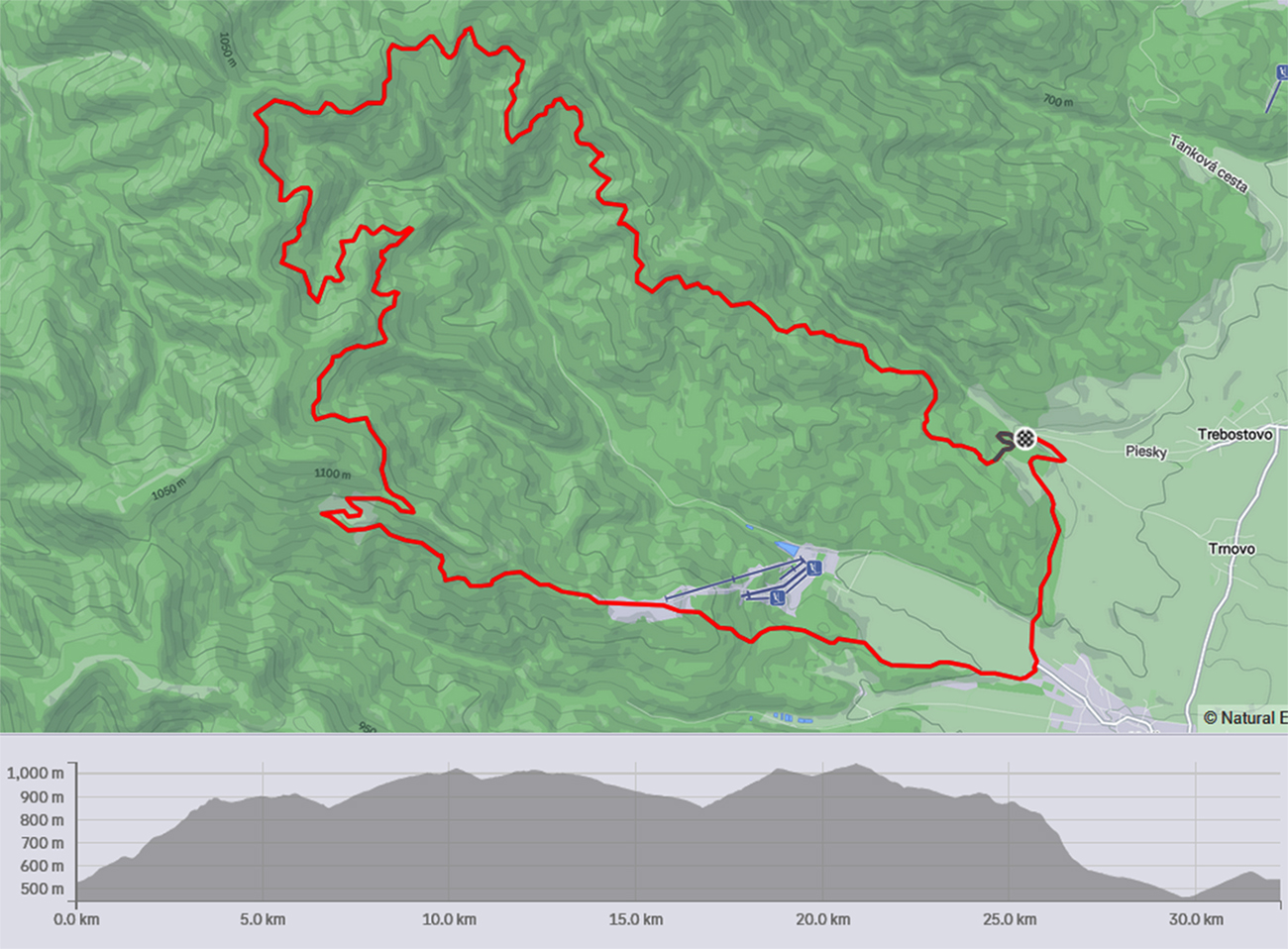Začal som aj skončil pod „muničákom“, na konci tankovej cesty nad Trebostovom. Vystúpal som až tesne pod červenú hrebeňovku pod sedlom Maríková, pretraverzoval pod Hnilickú Kýčeru, dole som sa spustil k hornej stanici lanovky a okruh som uzavrel cez horný koniec Valče a stúpaním malou dolinou nazad k muničáku. Týmto smerom je to lepšie, lebo opačne by bol úvod v stúpaní k lanovke nezjazdný. Strmá a rozrytá cesta je to: