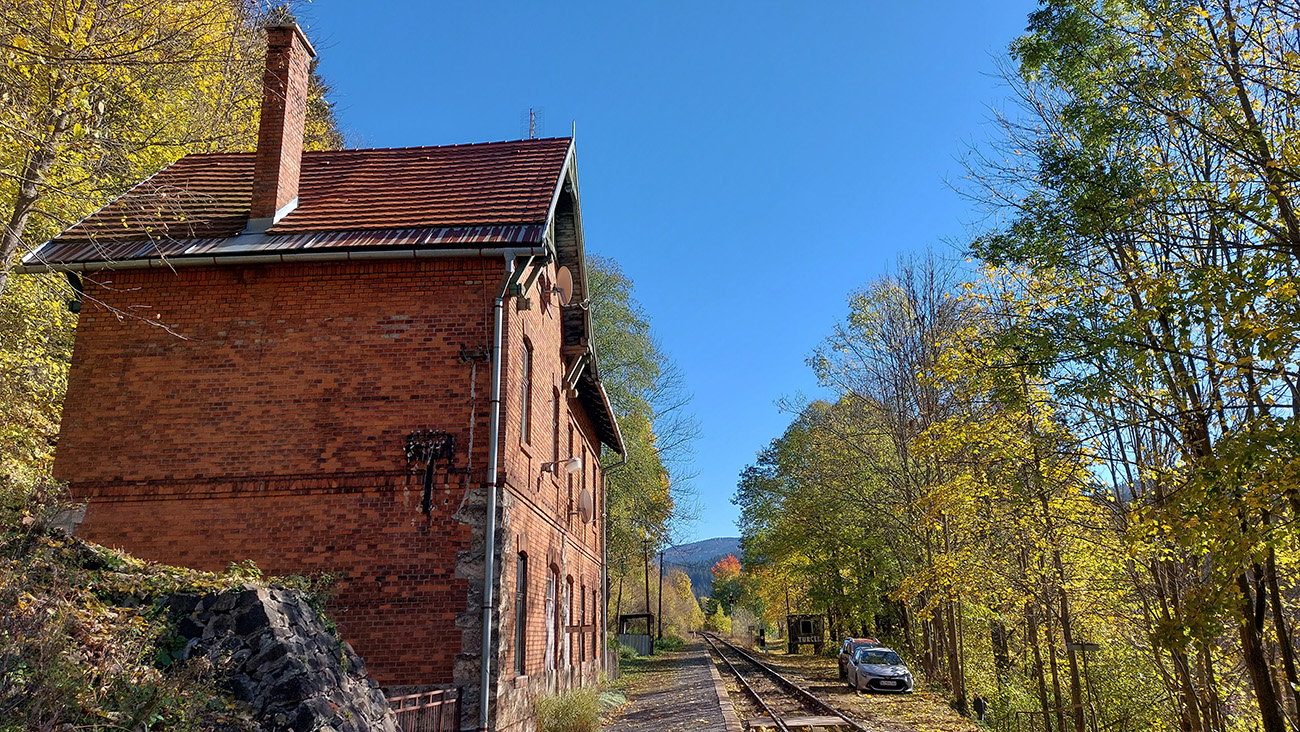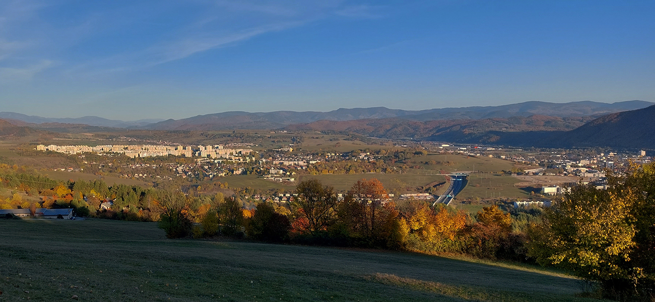 Cestou zo zastávky vlaku v Turčeku som preto najskôr poobzeral miestne „atrakcie“, pomimo značiek som sa vyštveral na hrebeň ku známemu tunelu, zbehol som na druhú stranu kúsoček po žltej, odpojil som sa na prevažne asfaltovú bežkársku trasu, vedúcu popod východné úbočia hrebeňa, po ďalšej žltej som zostúpil na „nižšie poschodie“ a po Rodinnom chodníčku a pomedzi nové domy som zo severu obišiel Kordíky, aby som sa už po zelenej značke prehupol do Starohorských vrchov a precupital cez krásne lúky pod Sokolím, Riečanské sedlo a Laskomer so známym vysielačom až dole do mesta, vynoriac sa na Medenom hámri, v parčíku cisárovnej Sissi.