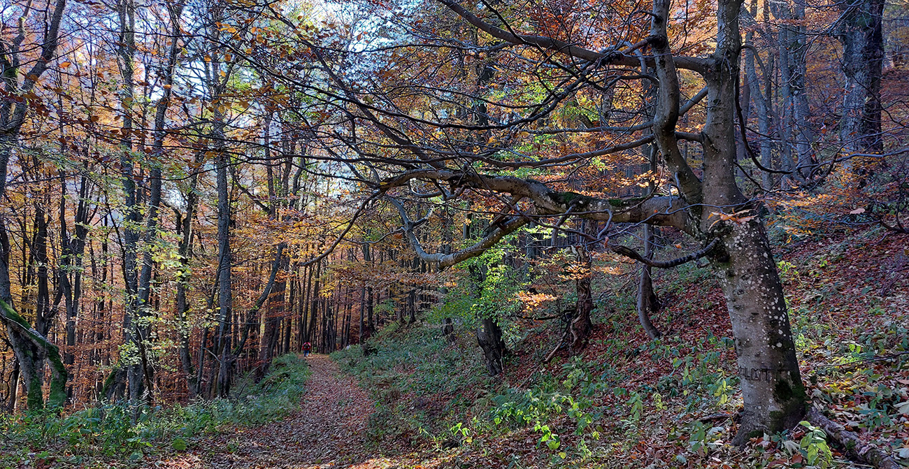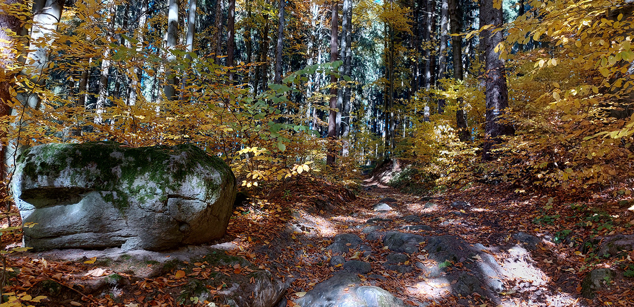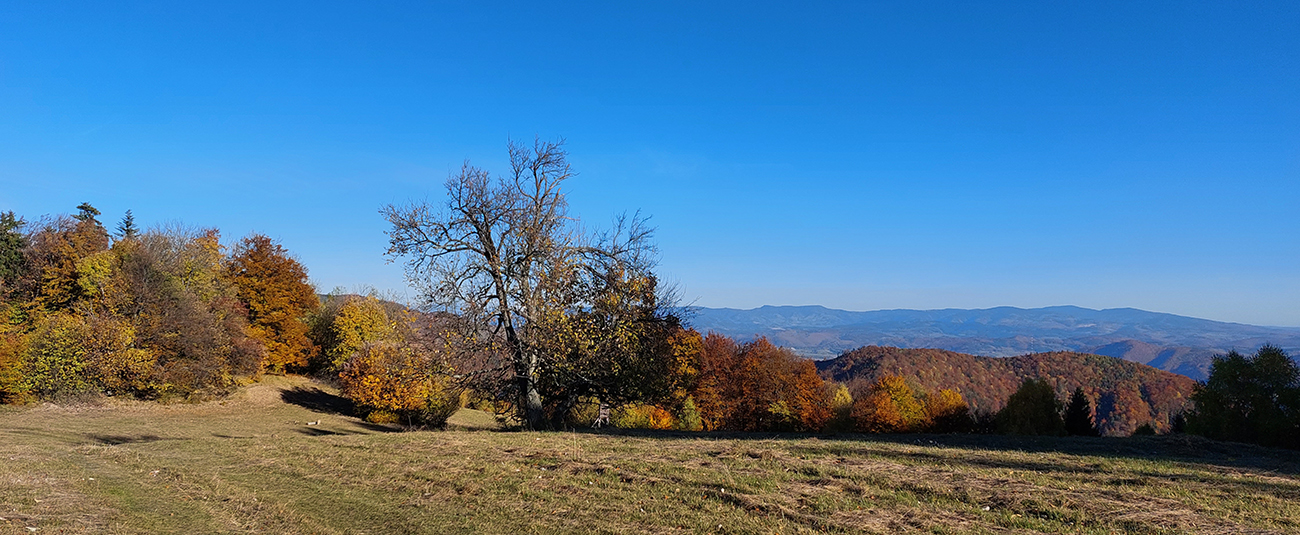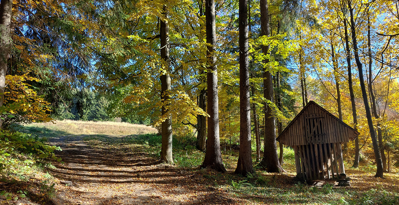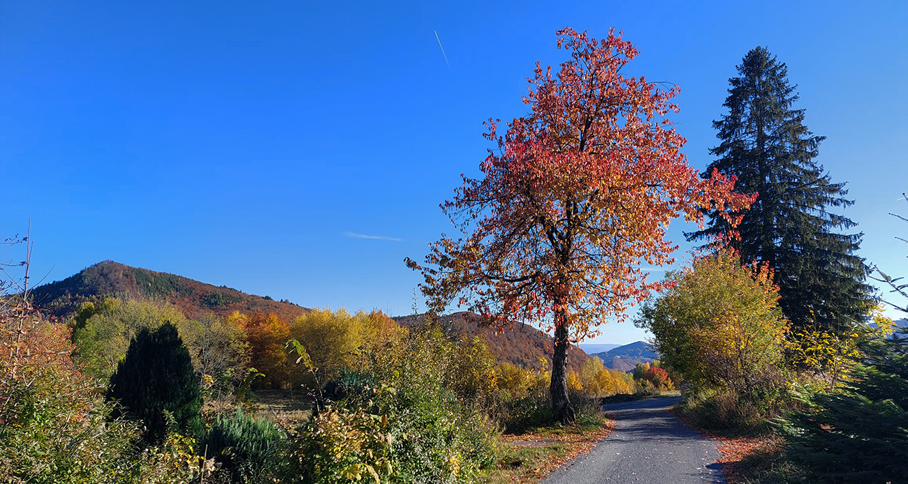 Názov hádam dobre vystihuje filozofiu tejto prechádzky. Predposledná októbrová nedeľa totiž vyšla neskutočne, čo sa počasia týka. Mrazivé ráno, obloha vymetená, vzduch ostrý, po fronte prečistený a do toho všetky farby jesene v najjasnejších odtieňoch. Jeden z tých nemnohých „superturistických“ dní, kedy hádam aj prechádzka rúbaniskom je potešením pre oko. Zaniesol ma do Kremnických vrchov, na ich západné úpätie. Potreboval som sa odtiaľ dostať do Banskej Bystrice, ale na hlavných turistických trasách isto bolo plno ľudí – preto nastúpila tá improvizácia a hľadanie kadejakých bočných a turisticky neoficiálnych cestičiek, po značkách aj mimo nich. Kremnické vrchy majú samozrejme tých možností strááášne veľa.