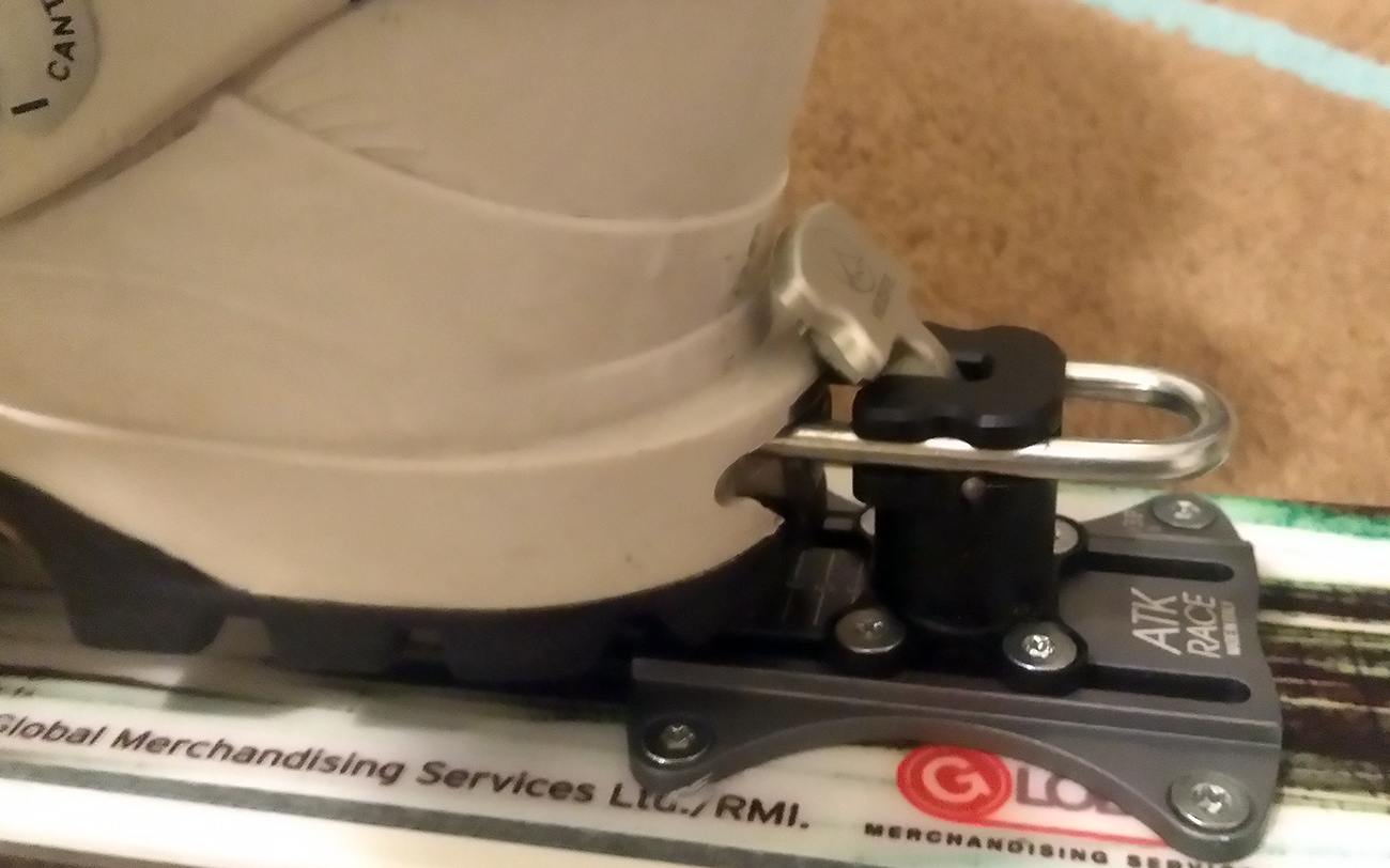 Viazanie som použil na trošku špeciálnu kombináciu. U ATK som zbadal, že ich ambasádor Cala Cimenti použil ATK Trofeo (de facto rovnaká trieda) na širokých XXL podložkách na širokej lyži a celý komplet použil na zlyžovanie Gasherbrumu VII (link TU ). Tak reku keď to funguje overené v takýchto extrémoch, tak snáď to pôjde aj na našich kopcoch. Fotky teda zobrazujú Kreuzspitze SCTT montované na podložkách ATK XXL R03 AP a podložky sú vŕtané (rozteč 6x6cm) do lyží Head špeciálnej edície Motörhead Rock n Roll (šírka 92 mm v strede). Pri doterajšom (síce krátkom) použití sa nevyskytol žiadny problém s viazaním v tomto kombe. Všetko hrá ako má: ľahko, rýchlo, jednoducho.