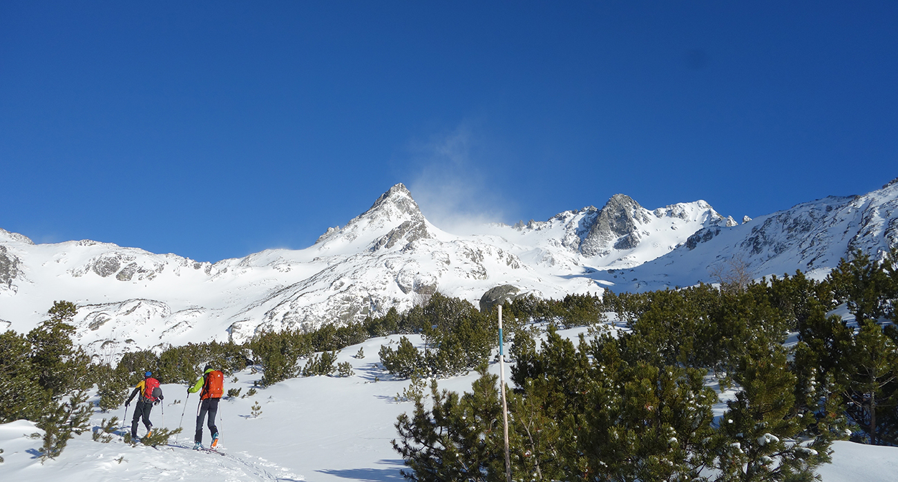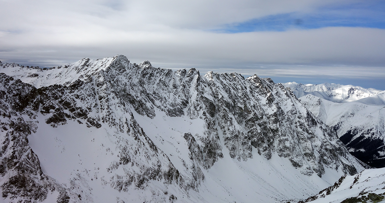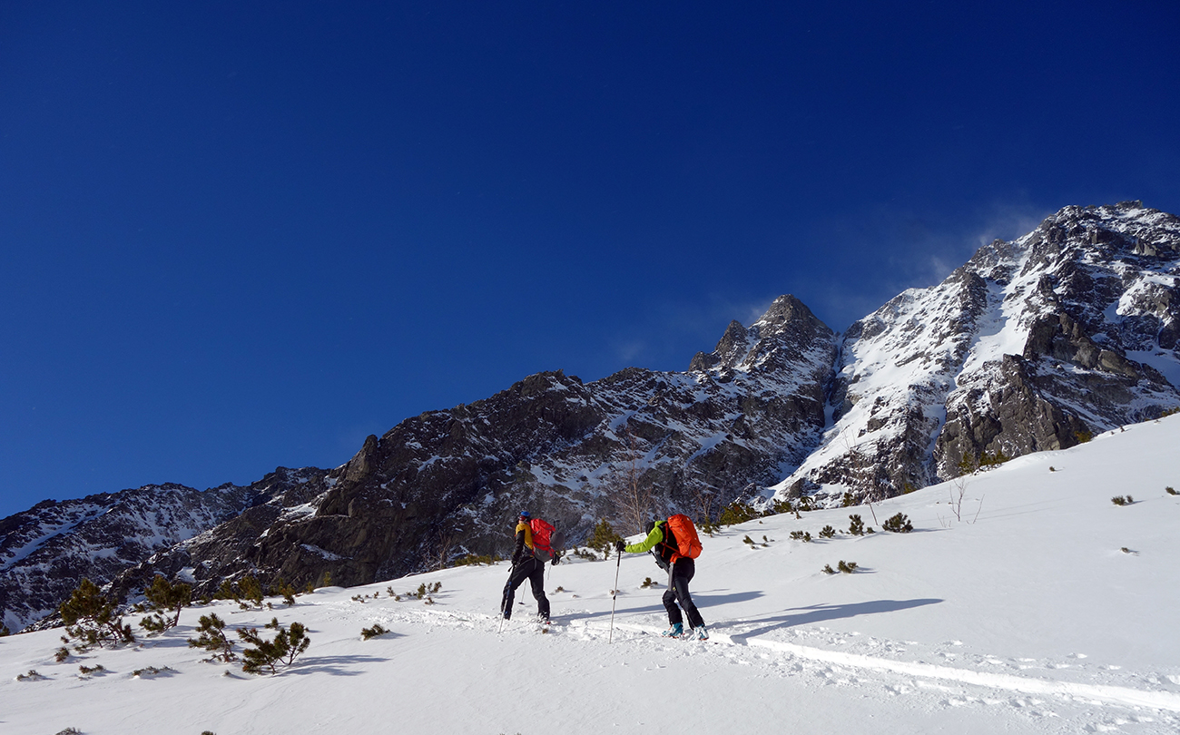 Sobota začína skvostne (azúro a takmer bezvetrie) a užívam si lyžovačku vyľudnenou dolinou. Rampa bezpečne zjazdná a od Žabích plies skvelá lyžovačka ufúkaným prašanom až k hotelu. Tentokrát bez občerstvenia, ale s vidinou výživného dňa nastavujem testovacie K2 Wayback 96-ky od Sportrysy na moje F1-ky. Vyrážame s Peťom Lichým a Robom Turjaníkom dolinou Mengusovskou a nechávame sa viesť čerstvou stopou až do Satanej dolinky. Pri Hincovom plese odbočujeme do Vyšného Kôprovského sedla. Chodník je tradične vyfúkaný až na kamenný podklad. Na chvíľu teda nasadzujeme mačky a lyže idú na batoh. V sedle výmena a moji 50+ parťáci neúnavne diktujú tempo a ťahajú stopu panenským svahom. V krásnom počasí dorazíme na snehový predvrchol. Vieme, čo nás čaká. Nenormálna lyžovačka v jemne sfúknutom púdri nemá chybu a doprajeme si dojazd až pod severku Štrbského štítu.