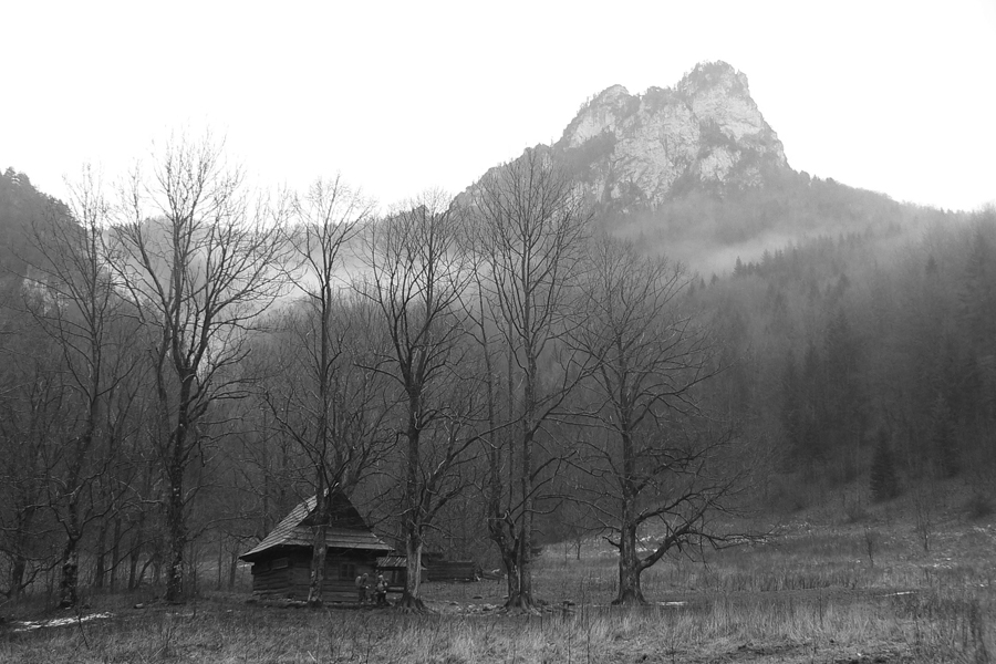 Potom ma už chodník „vypľul“ v sedle medzi Rozsutcami. Kým Veľký Rozsutec bol zahalený v mraku, malý pyšne dominoval okoliu. Presne to som potreboval. Krátky presun po lúkach a o chvíľu už som „feratoval“ po reťaziach na vrchol. Výhľady samozrejme nič moc, svetlo biedne, krajina do šeda, ale mraky dostatočne vysoko a to bralo a cesta naň stojí za to v každom počasí.