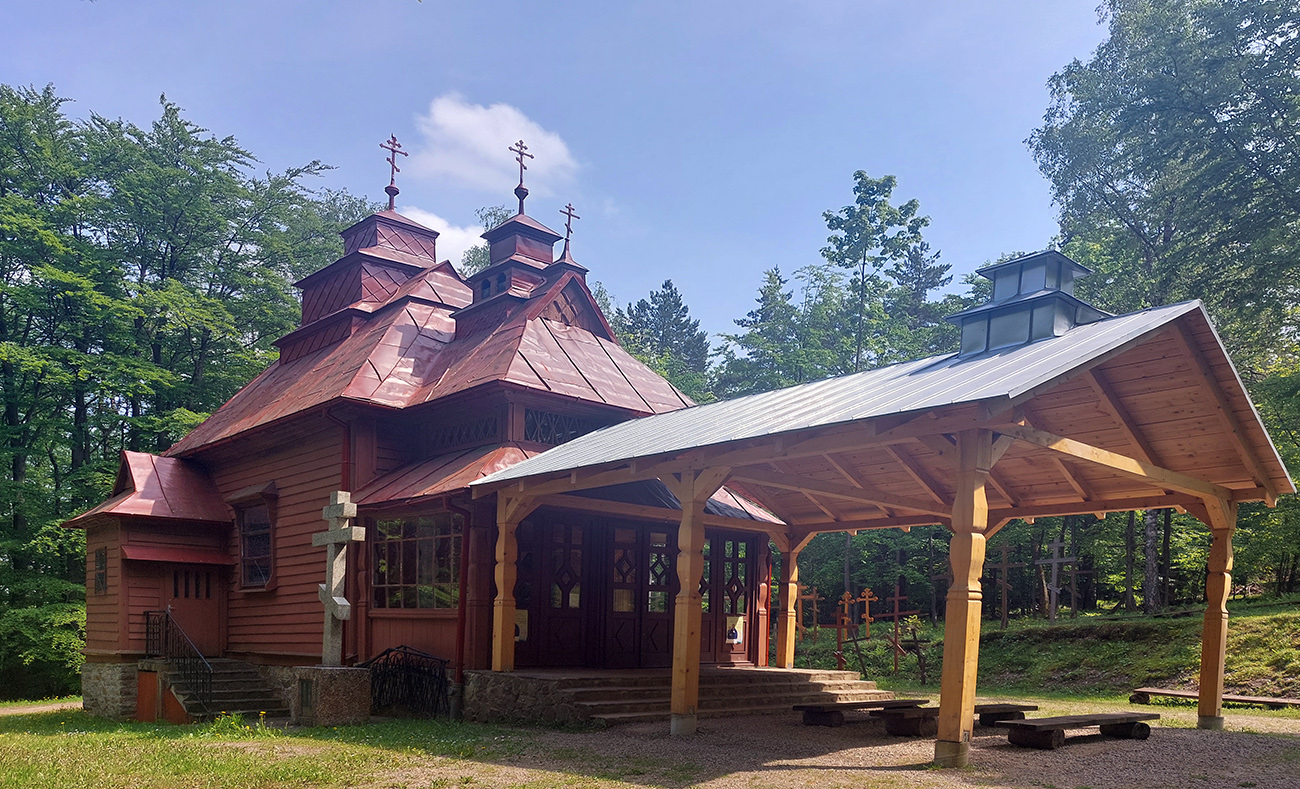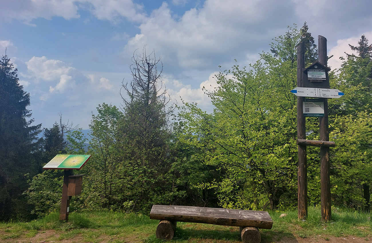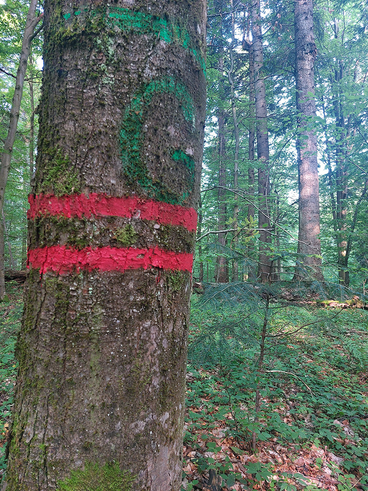 Medzi tým, pred tým aj potom pekné lesy, ale aj rúbane, vojenské cintoríny, stará vojenská pozorovateľňa na Pasekách aj zákonom chránené jedliny - a stále hore a dole. Zase začínajú strmšie sklony. Prvá séria „štipľavých kopčekov“ začína stúpaním na Szcołb (769 m) a končí v Balnici. Kríza už našťastie povolila, no stúpania idem stále pomalšie.