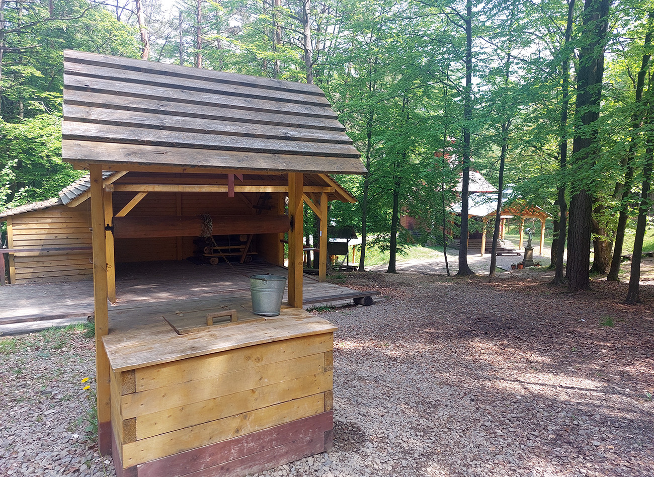 Po raňajkovej slanine ma začína trochu „sušiť“, ale aj s tým som počítal, a tak pijem koľko mi chutí, už som blízko k vode. A ozaj, pri kostole na poľskej strane sedla Cigeľka je okrem iných stavbičiek aj normálna studňa. Akurát odchádza školský výlet a v plechovom vedre ostalo po detiskách ešte dosť parádnej, čerstvo naťahanej vody – to je almázia! Lebo ďalšia možnosť dotankovať je až na 99. kilometri, pod vrcholom kopca Stávok pred Duklou. To by mala byť istota – síce malý pramienok, ale voda tam bola aj koncom augusta, počas Rusínskej stovky.