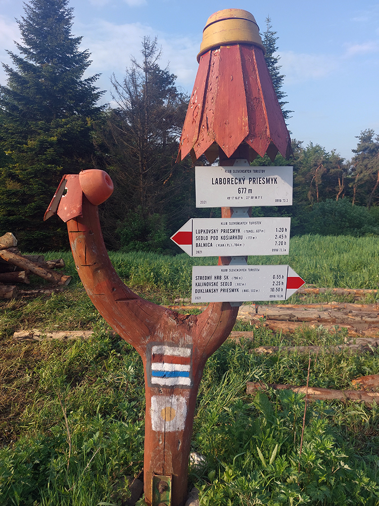 V Laboreckom priesmyku hnusne rozbitá zvážnica, v Lupkovskom zarastené, mokré lúky a tráva po pás, kde nevidno pod nohy. Dole k tunelu vodu hľadať nejdem, furt mám dosť. Radšej si dám ľahké raňajky a dúfam, že ich telo prijme. Je osem hodín a na slnku tak akurát príjemne, teplúčko.