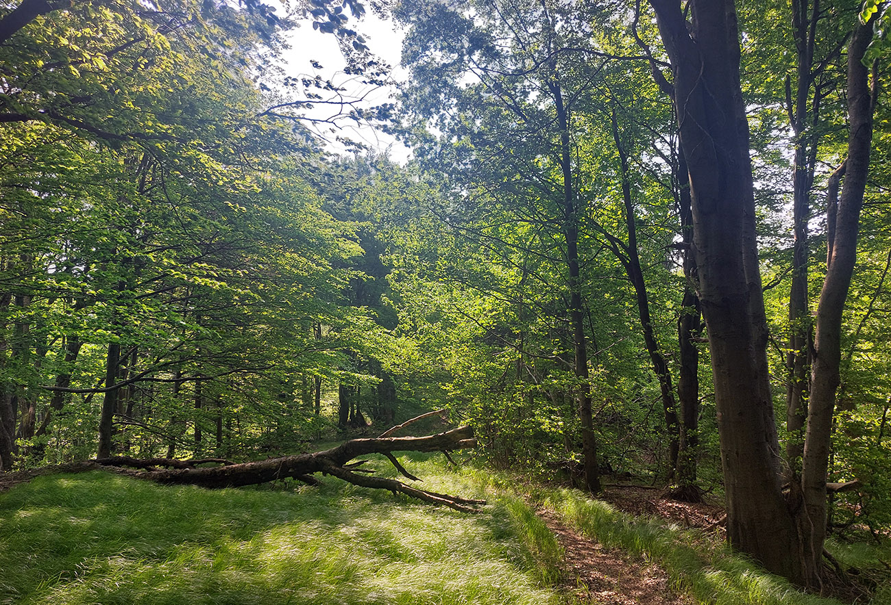 Na Kráľovej studni (22. km) tankujem do brucha aj do fliaš čo to dá, lebo najbližšia voda bude vraj až na 52. km, v sedle Cigeľka. Zatiaľ ale stačí, osobne nemám veľkú spotrebu vody, navyše počasie mám ideálne. Ráno bolo zatiahnuté, ale po vlhkom a teplom týždni začal fúkať poriadny severák. Hore v korunách poriadne hučí, mňa dole akurát dobre ovieva, a ešte som aj v tieni. Len keď ma občas vyhodí na lúky, cítim silu slnka. Hlina pod nohami v lese je ale taká akurát, nelepí ani sa nepráši.