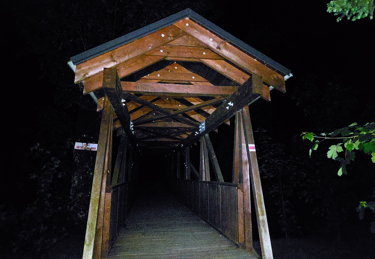 Ako dole k pumpe, tak aj nazad hore (po krajnici) a potom už znovu do ticha pod vyhliadkovú vežu. Do lesa za ňou sa symbolicky ponáram o polnoci.