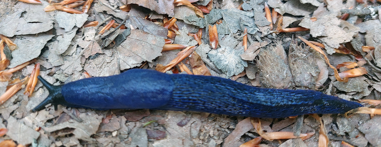 Doplna dopĺňam hneď na prvom možnom mieste – pár metrov od vrcholu Kanasiówky je na mape označený pramienok a v reáli je tam aj šípka na strome. Tak idem pozrieť, čo môže tiecť tak vysoko. A ozaj, je tam! Vrchnák z bidóna poslúžil a ďalej sa mi ide znovu veselšie. Lebo v noci som veľkú spotrebu nemal, ráno je chladno a na kopcoch okolo 800 m aj zvyšky hmiel ochladzujú, spolu s tým severákom, ktorý už od včera hučí. Jeden z mála výhľadov je na Medzilaborce, tak sa skôr zabávam pohľadmi pod nohy: cez deň som sa uhýbal čiernomodrým chrobákom, v noci žabám, salamandrám a modrým slimákom – bezdomovcom. So svitaním si používatelia cesty znova vymieňajú službu. Len ja už nadsluhujem, aj ma podľa toho vypína (niekde okolo Kalinovského sedla), duklianska čokoládová eufória skončila. Až o pol siedmej slnko konečne vylieza nad mraky či nad zvyšky hmly, či čo sa to tu povaľuje, a svet a les je v ostrom svetle hneď veselší.