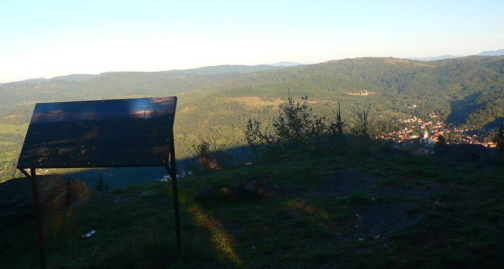 Hore poobzerám, či nejaké rúny nepribudli, ale jediné čo je tu navyše, je pár plastových fliaš a obvyklého bordelu. Aj okolo sedení na Troch krížoch, veď ako inak? Pod trojkrížom je zas vyhliadka, ale taká „sofistikovanejšia“, aj s panoramatickou fotkou a popismi. Odtiaľto je ako na dlani Banská Bystrica, v ďiaľke na obzore sa dokonca belejú premiérovo zasnežené Roháče. Aby sa nepovedalo, že smerom na západ nič, tam vidno vďaka rúbanisku Vtáčnik.