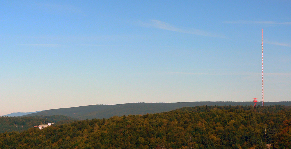 Cestou nazad sa otvára výhľad na opačnú stranu, dominuje mu vysielač na Skalke. Nasleduje dlhší úsek širokou lesnou cestou, čerstvo prečistenou a prepílenou. Hádam aby mohli mašiny v zime bežecké stopy ťahať?