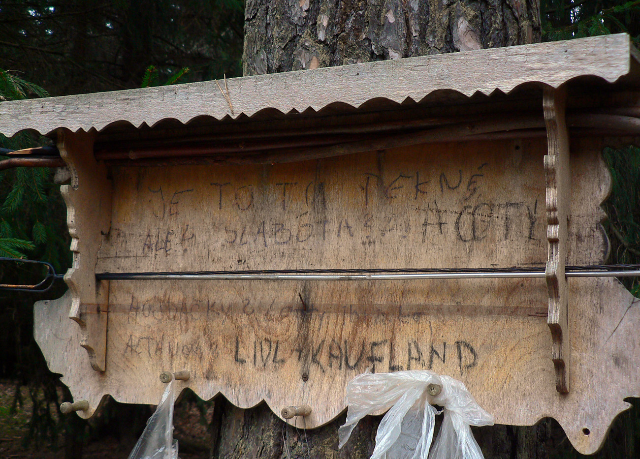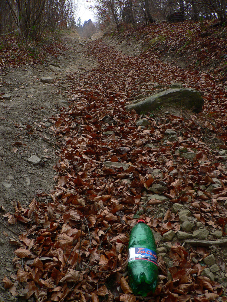 A bodrel po vypatlaných lesných robotníkoch. Lebo plechovky od piva, plastové fľaše a bandasky od oleja sa tu vyskytujú nepriamo úmerne počtu stromov okolo cesty. Kopy odpadkov po chľastačkách pri ohniskách a posedeniach to korunovali - hlavne že sú všade krucifixy, kaplnky a obrázky svätých s hore vyvrátenými očami.
