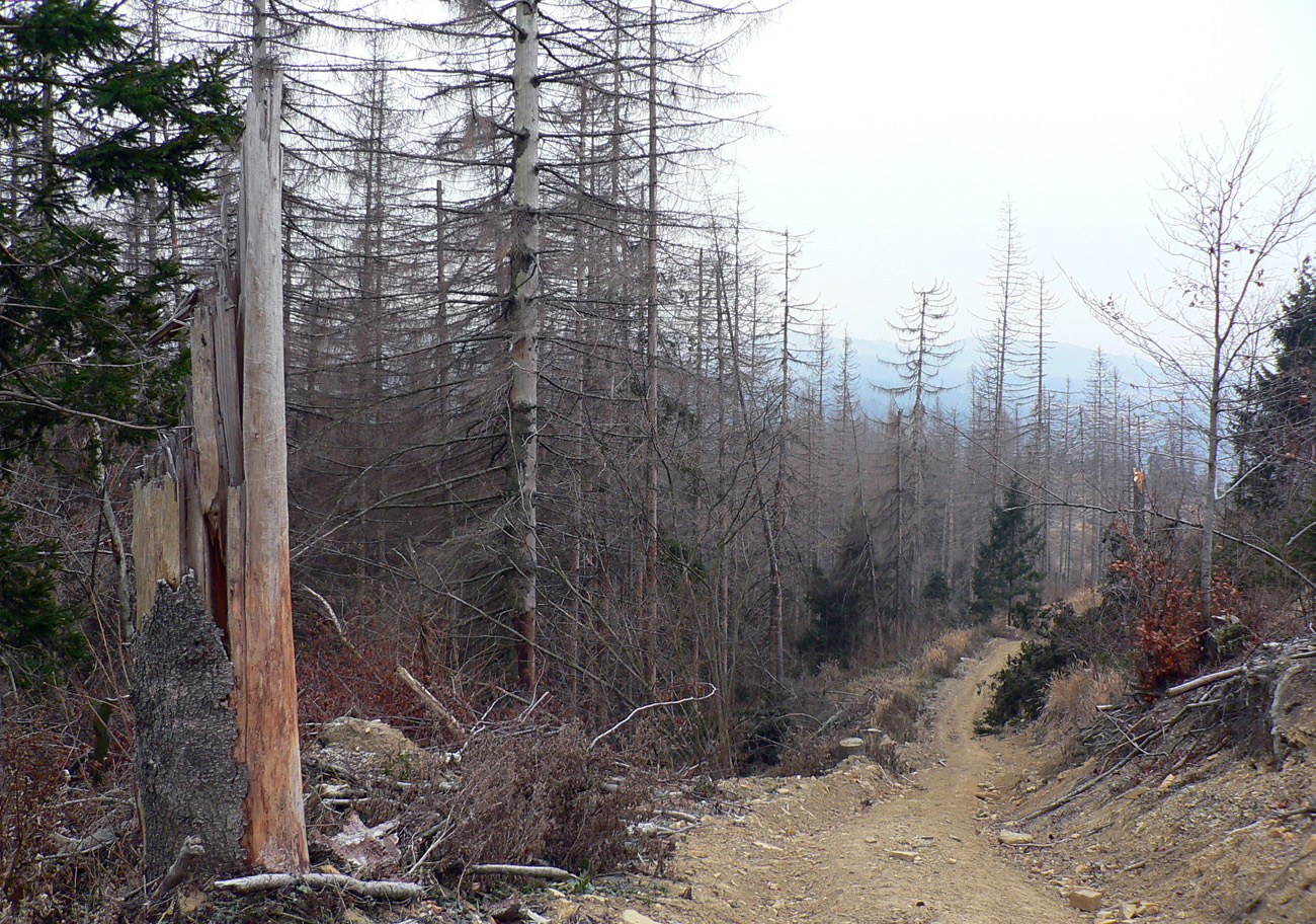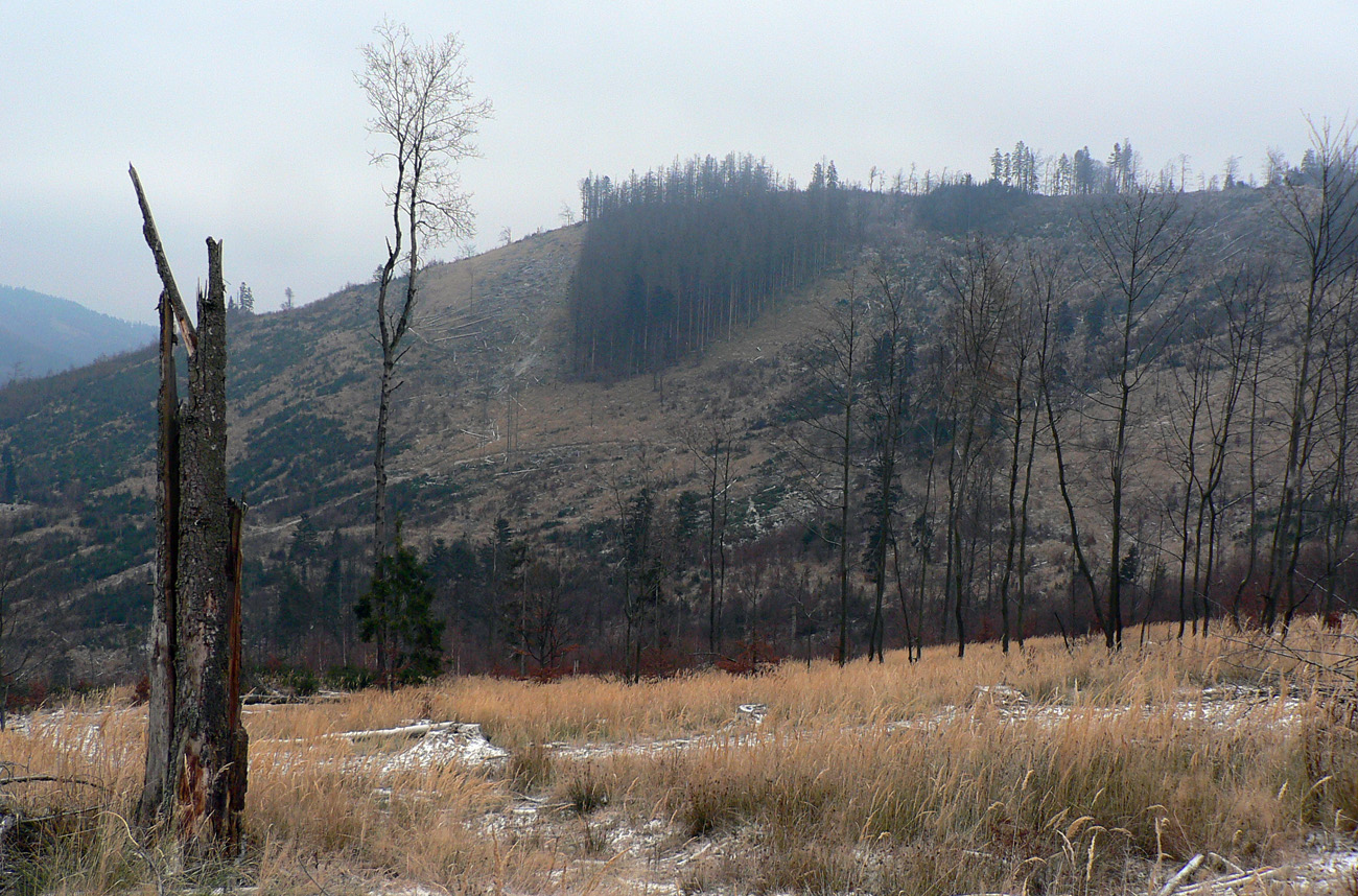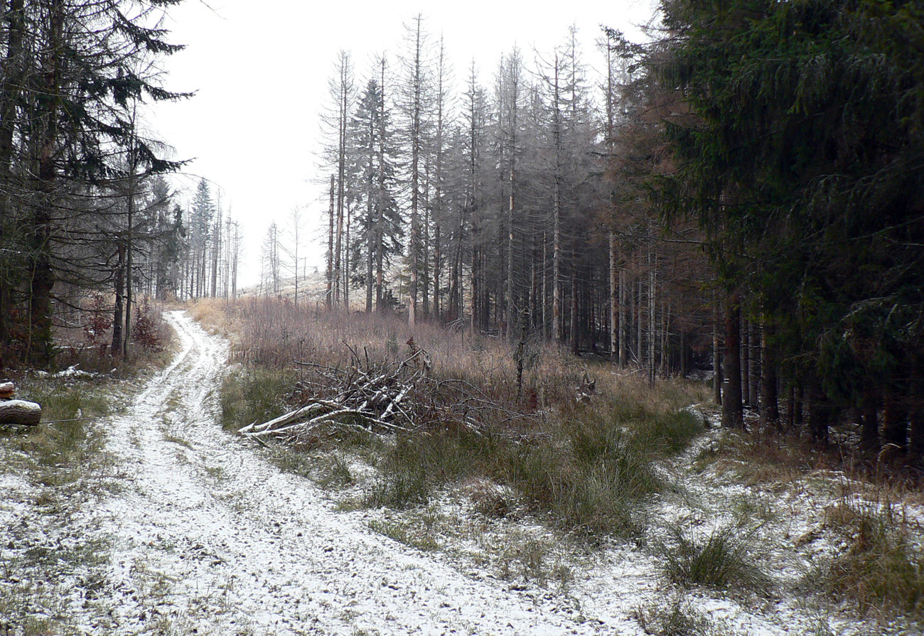Na turistickej mape to síce vyzerá dobre, ale len tesne pred odchodom z domu som sa pozrel aj na mapu leteckú. A to som nemal robiť... No, ale aspoň som bol pripravený na realitu. Lebo šedivé nebolo len počasie prichádzajúceho frontu a klesajúcej oblačnosti. Šedivý dojem z väčšiny tých približne 30 kilometrov zanechali vo mne najmä rozmlátené lesné cesty, vybrakované a miestami vyschnuté lesy, zvuky motorových píl z každej strany.
