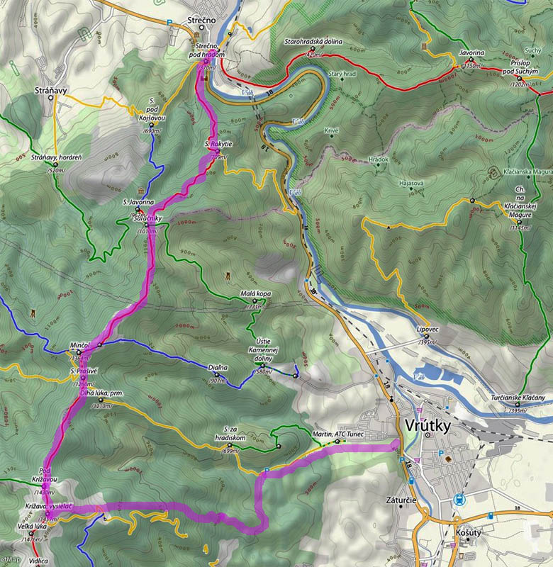 Chcelo to niečo krátke v rámci časových možností a niečo na zahriatie v tuhej zime. Preto takáto trasa. Stále do kopca a jednoduchý a rýchly odjazd z Holí do Vrútok. Inak aj v zime je orientačne jednoduchá, to sa tiež ráta :-) Zo Strečna do sedla Rakytie je to najjednoduchšie – od hlavnej poza hrad po červenej, za poslednými domami sú dve možnosti. Po cyklotrase (lesná cesta), alebo po červenej (strmšia lesná cesta). Popri nej vedie aj plynovod, tak aj keby sneh značky zafúkal, dá sa (oranžovo-čierne tyče). Teraz boli obe cesty prehrnuté až na hlinu, aj na bajku by sa tou cyklotrasou dalo. Lebo v sedle majú lesáci lanovku a drevosklad. Snehu okolo Strečna v lese bolo koncom januára minimum, našťastie na ceste tak akurát na výšľap, dole by som to neriskoval.